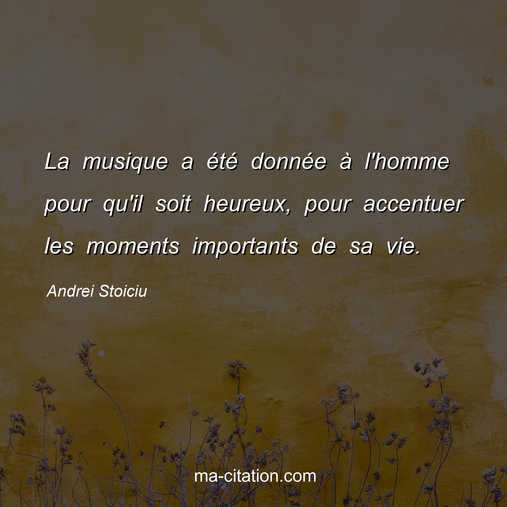 Andrei Stoiciu est l'auteur de la citation sur la vie "La musique a été donnée à l'homme pour qu'il soit heureux, pour accentuer les moments importants de sa vie.".