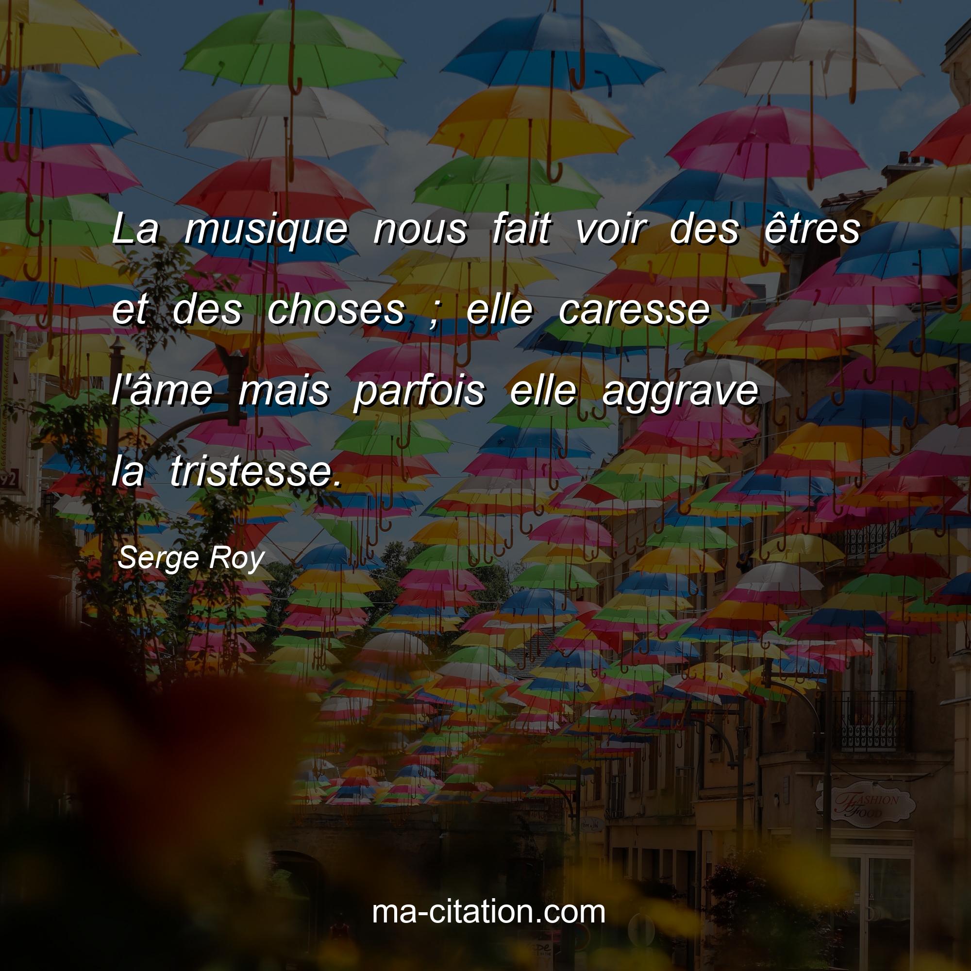 Serge Roy est l'auteur de la citation sur la vie "La musique nous fait voir des êtres et des choses ; elle caresse l'âme mais parfois elle aggrave la tristesse.".