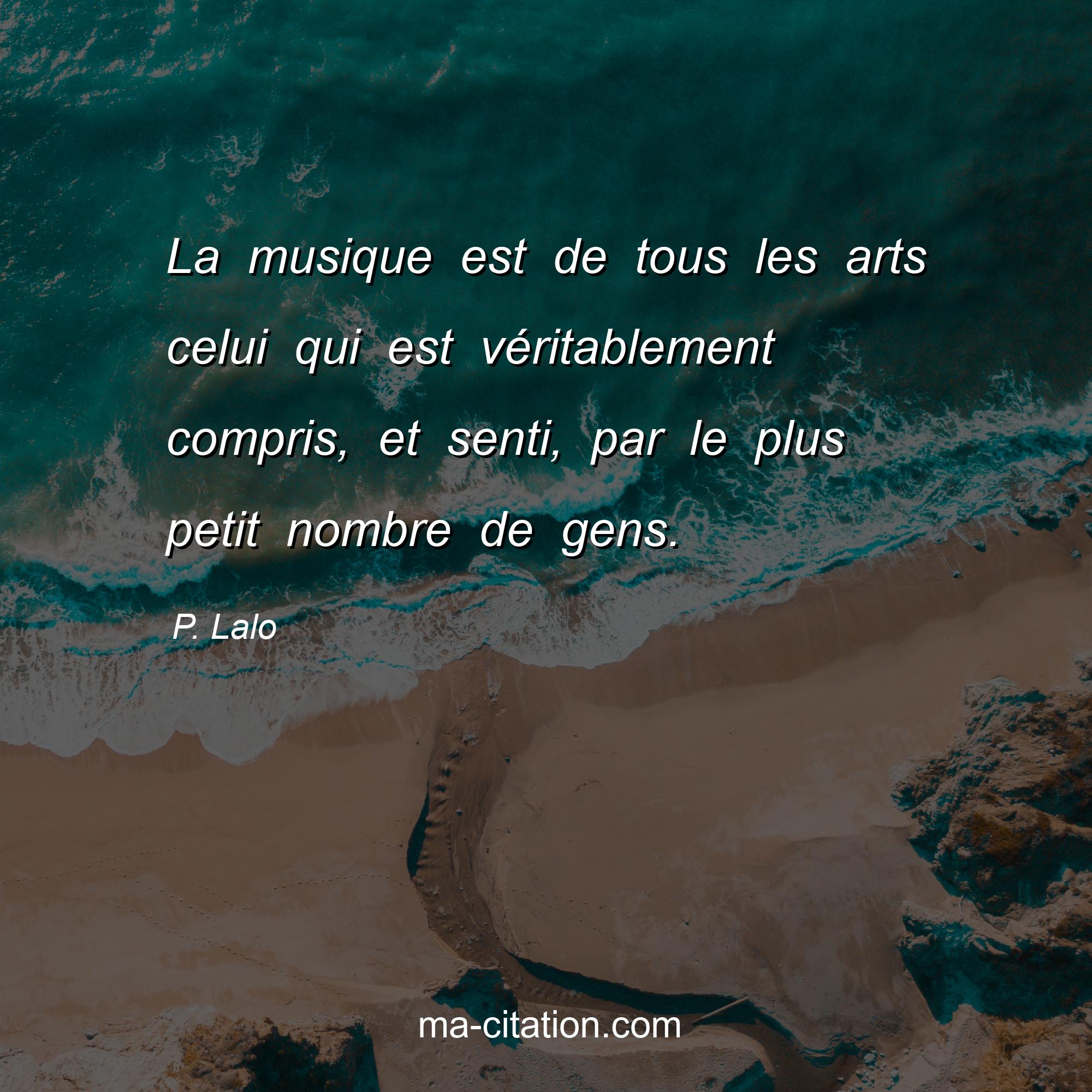 P. Lalo est l'auteur de la citation sur la vie "La musique est de tous les arts celui qui est véritablement compris, et senti, par le plus petit nombre de gens.".