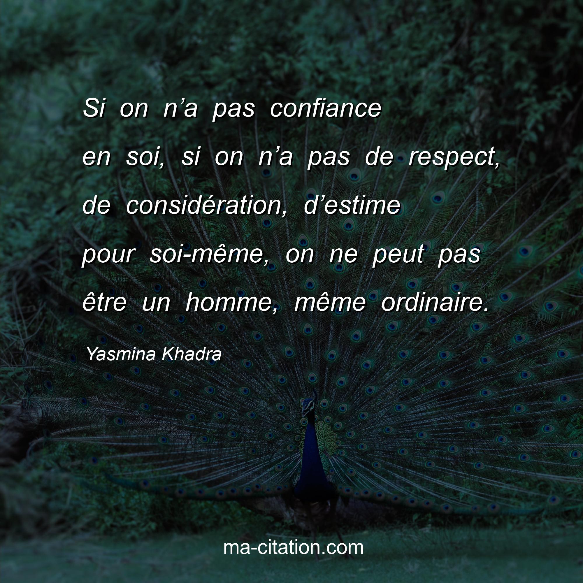 Citation sur la vie de Yasmina Khadra :Si on n’a pas confiance en soi, si on n’a pas de respect, de considération, d’estime pour soi-même, on ne peut pas être un homme, même ordinaire.