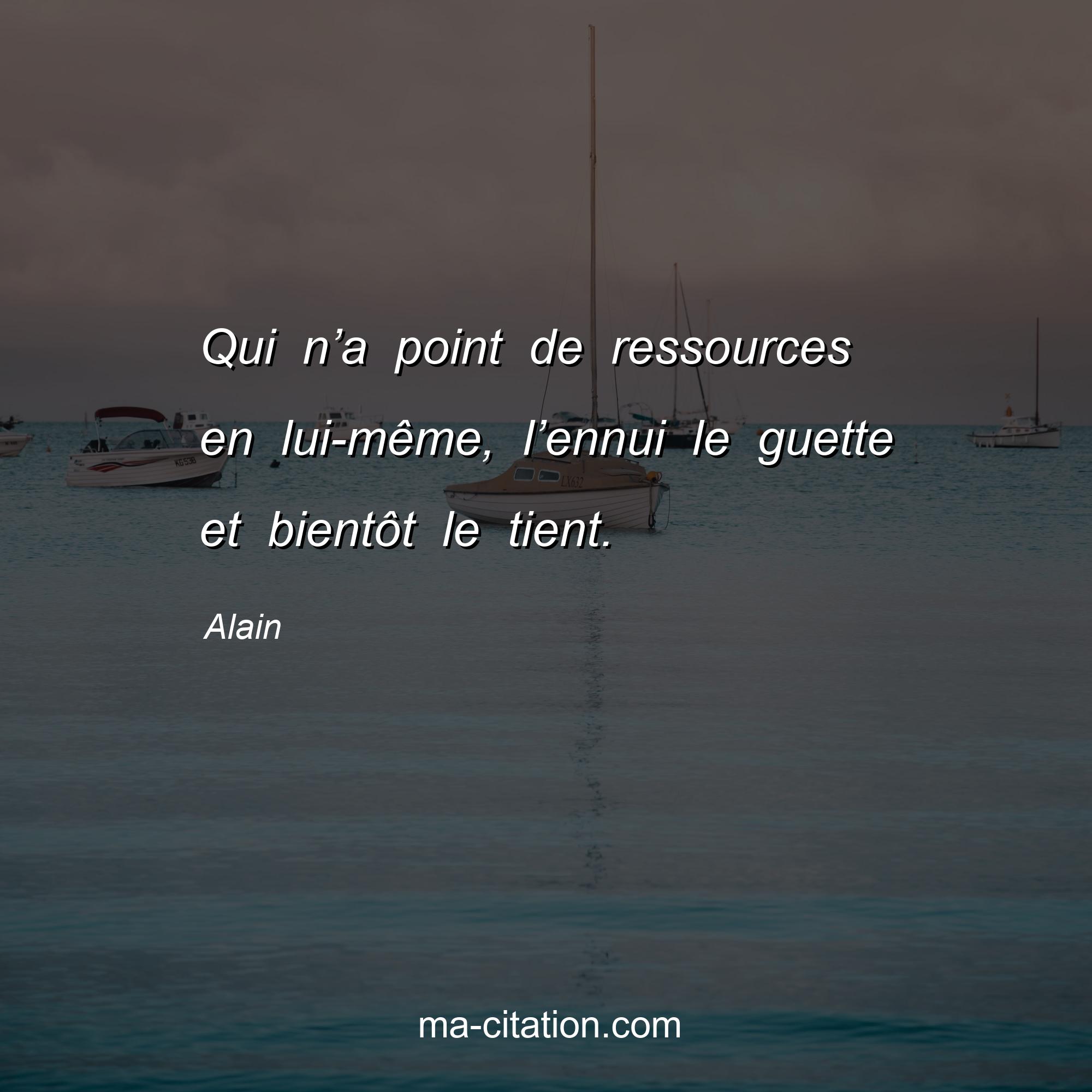 Citation sur la vie d'Alain :Qui n’a point de ressources en lui-même, l’ennui le guette et bientôt le tient.