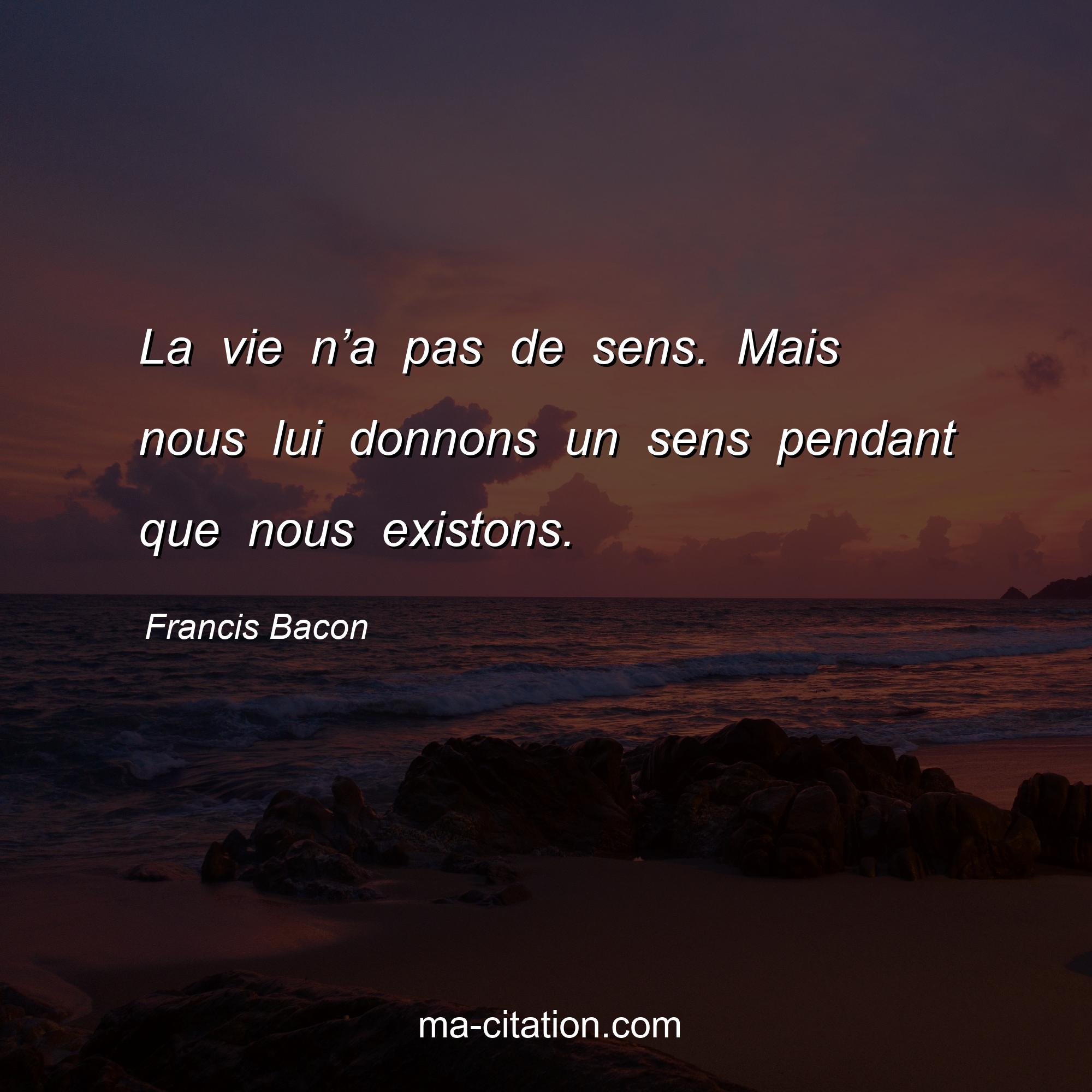 Citation sur la vie de Francis Bacon :La vie n’a pas de sens. Mais nous lui donnons un sens pendant que nous existons.