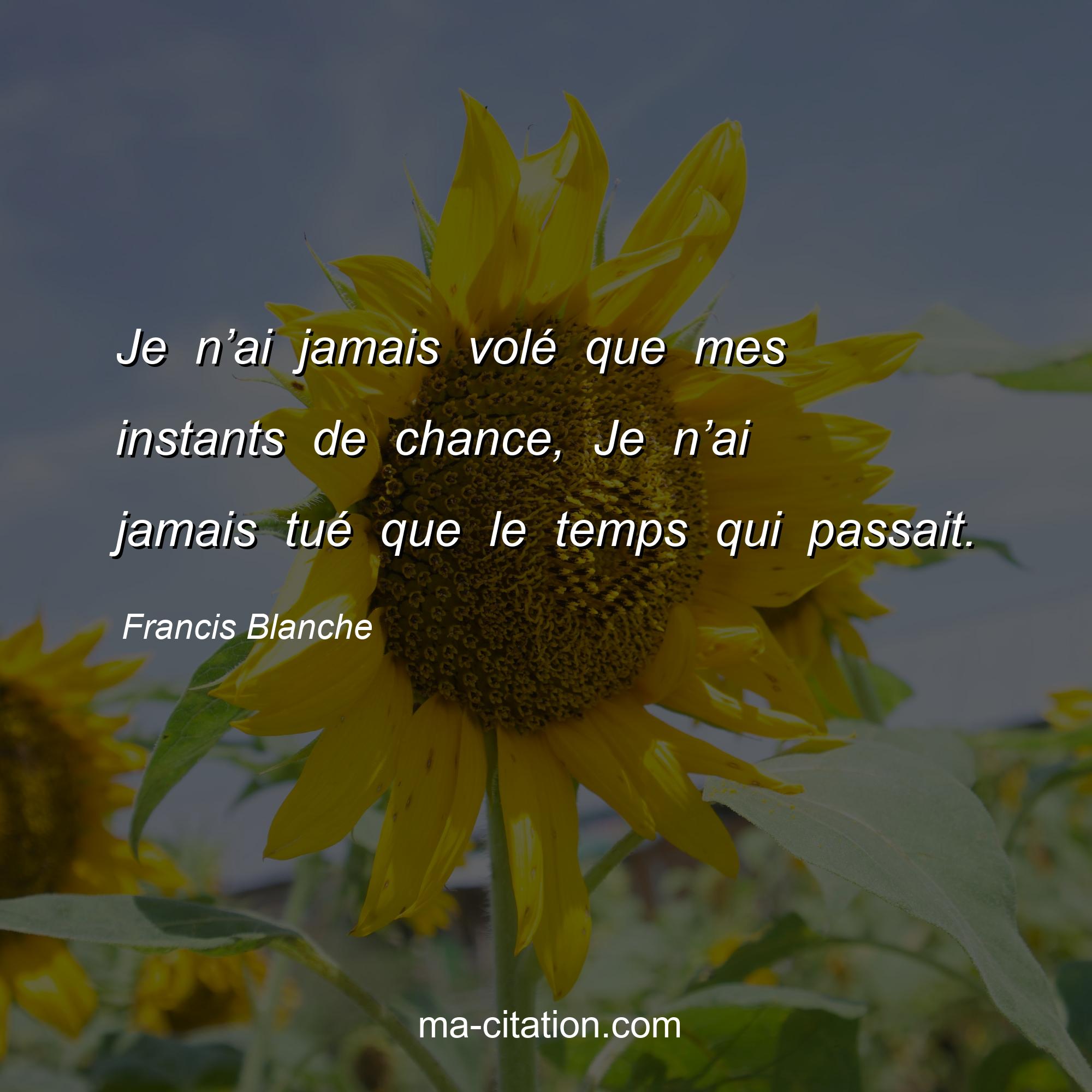 Citation sur la vie de Francis Blanche :Je n’ai jamais volé que mes instants de chance, Je n’ai jamais tué que le temps qui passait.