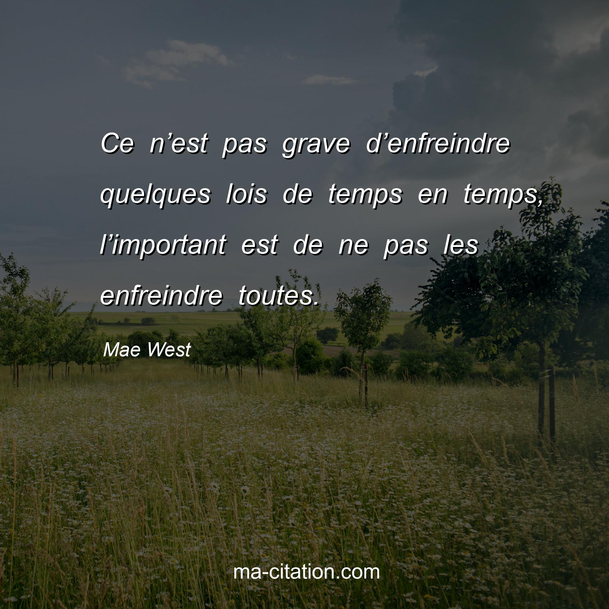 Citation sur la vie de Mae West :Ce n’est pas grave d’enfreindre quelques lois de temps en temps, l’important est de ne pas les enfreindre toutes.