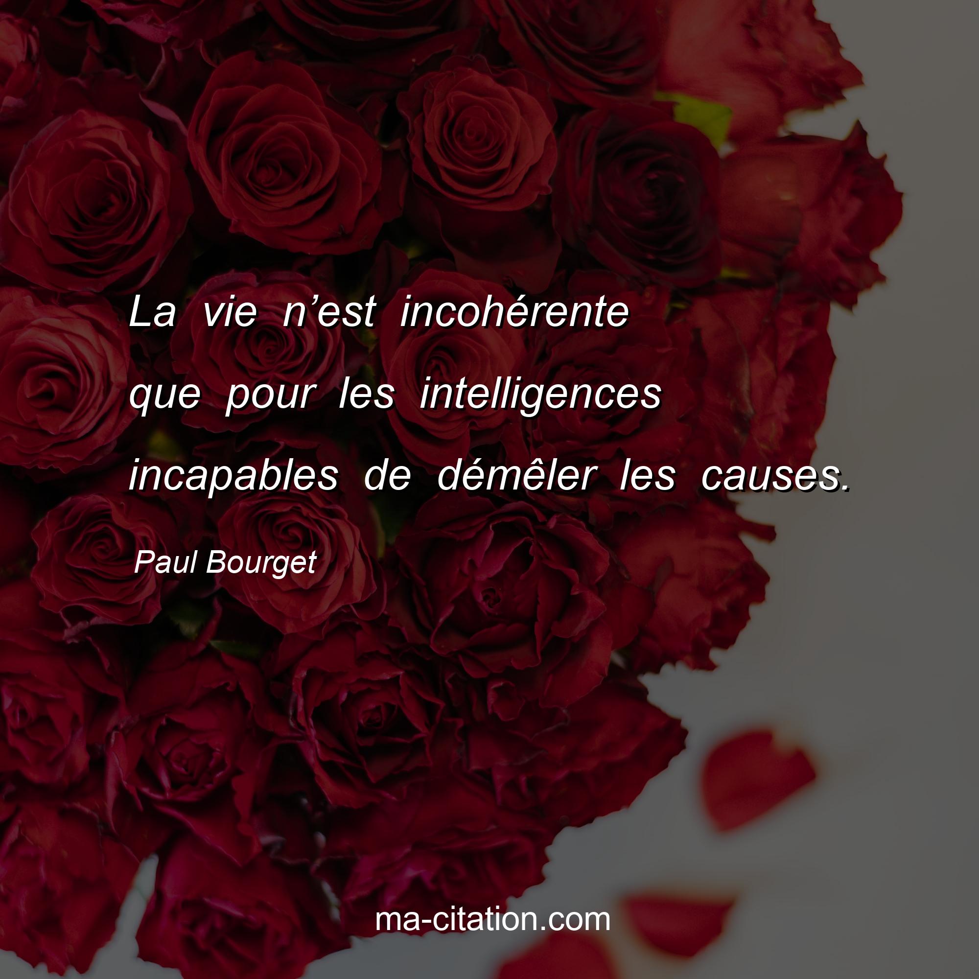 Citation sur la vie de Paul Bourget :La vie n’est incohérente que pour les intelligences incapables de démêler les causes.