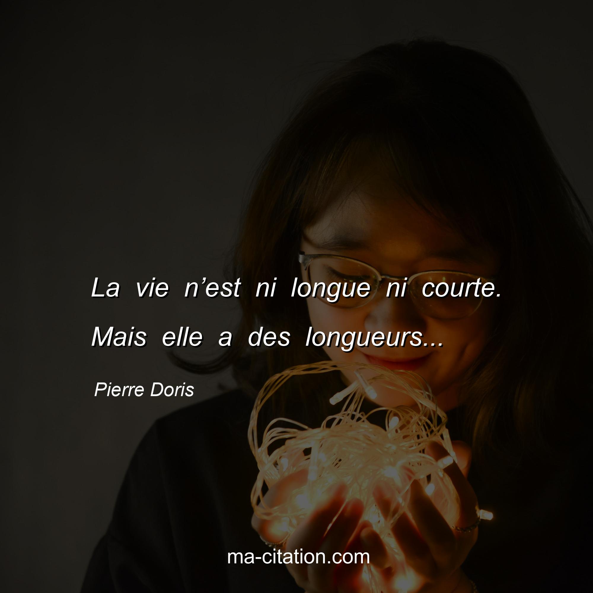 Citation sur la vie de Pierre Doris :La vie n’est ni longue ni courte. Mais elle a des longueurs...