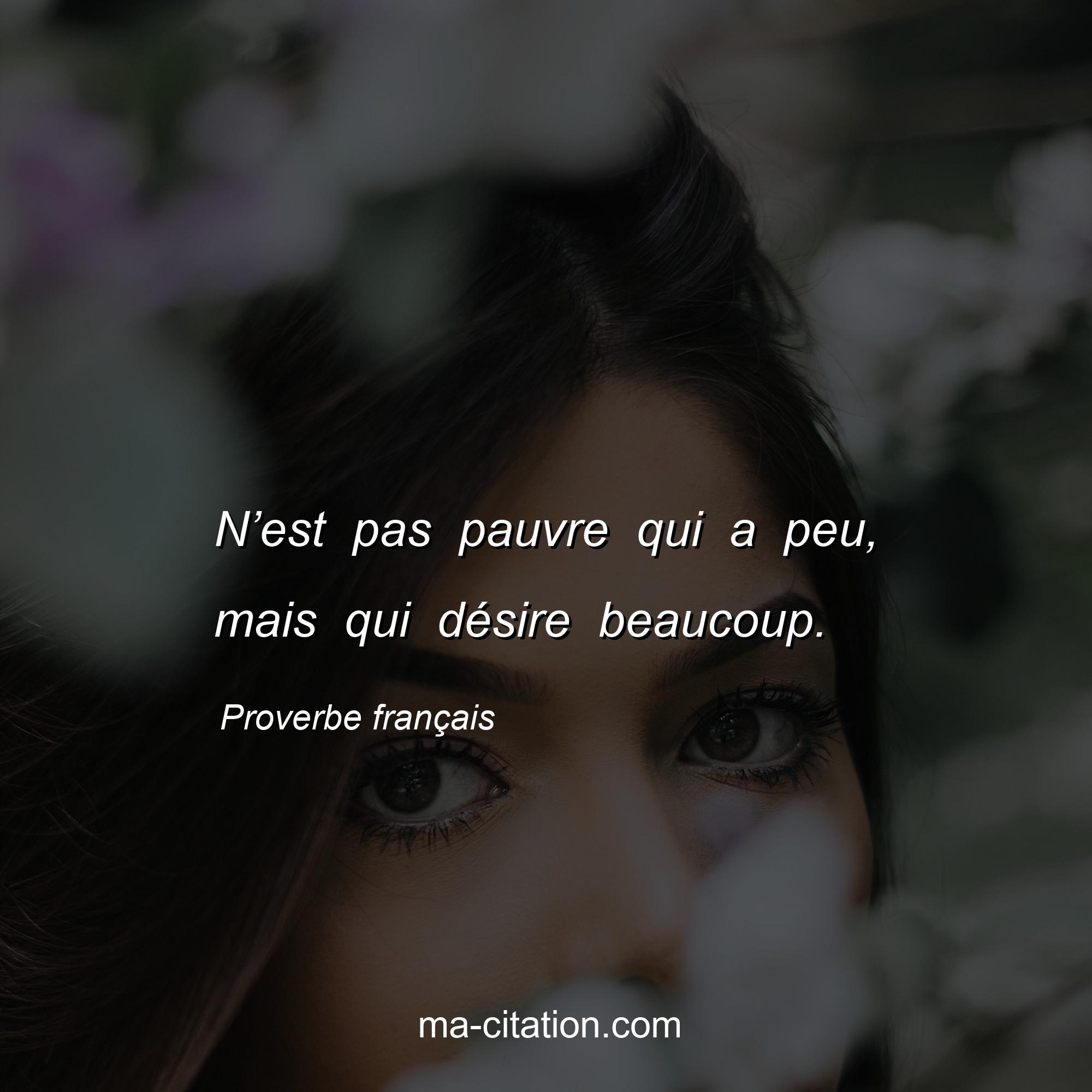 Proverbe français sur la vie :N’est pas pauvre qui a peu, mais qui désire beaucoup.