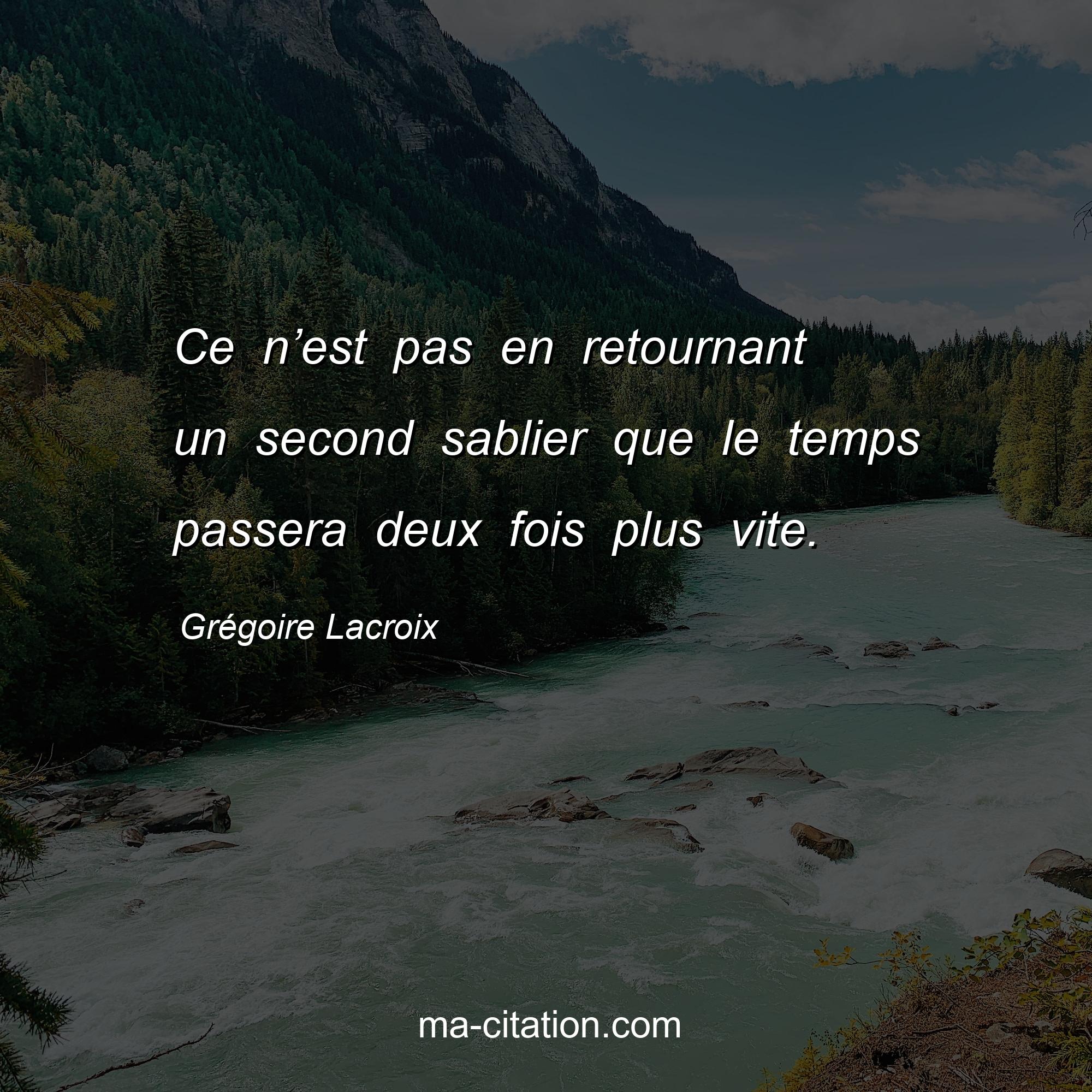 Citation sur la vie de Grégoire Lacroix :Ce n’est pas en retournant un second sablier que le temps passera deux fois plus vite.