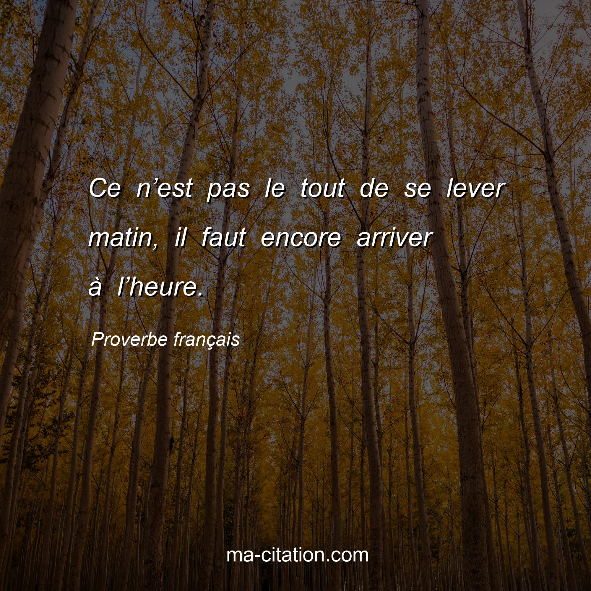 Proverbe français sur la vie :Ce n’est pas le tout de se lever matin, il faut encore arriver à l’heure.