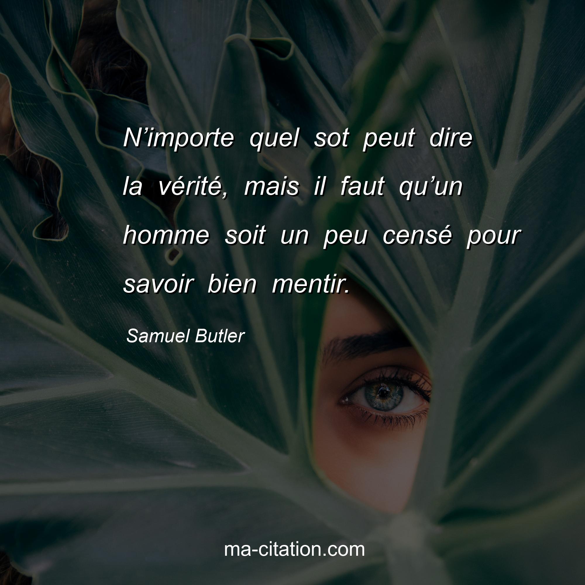 Citation sur la vie de Samuel Butler :N’importe quel sot peut dire la vérité, mais il faut qu’un homme soit un peu censé pour savoir bien mentir.