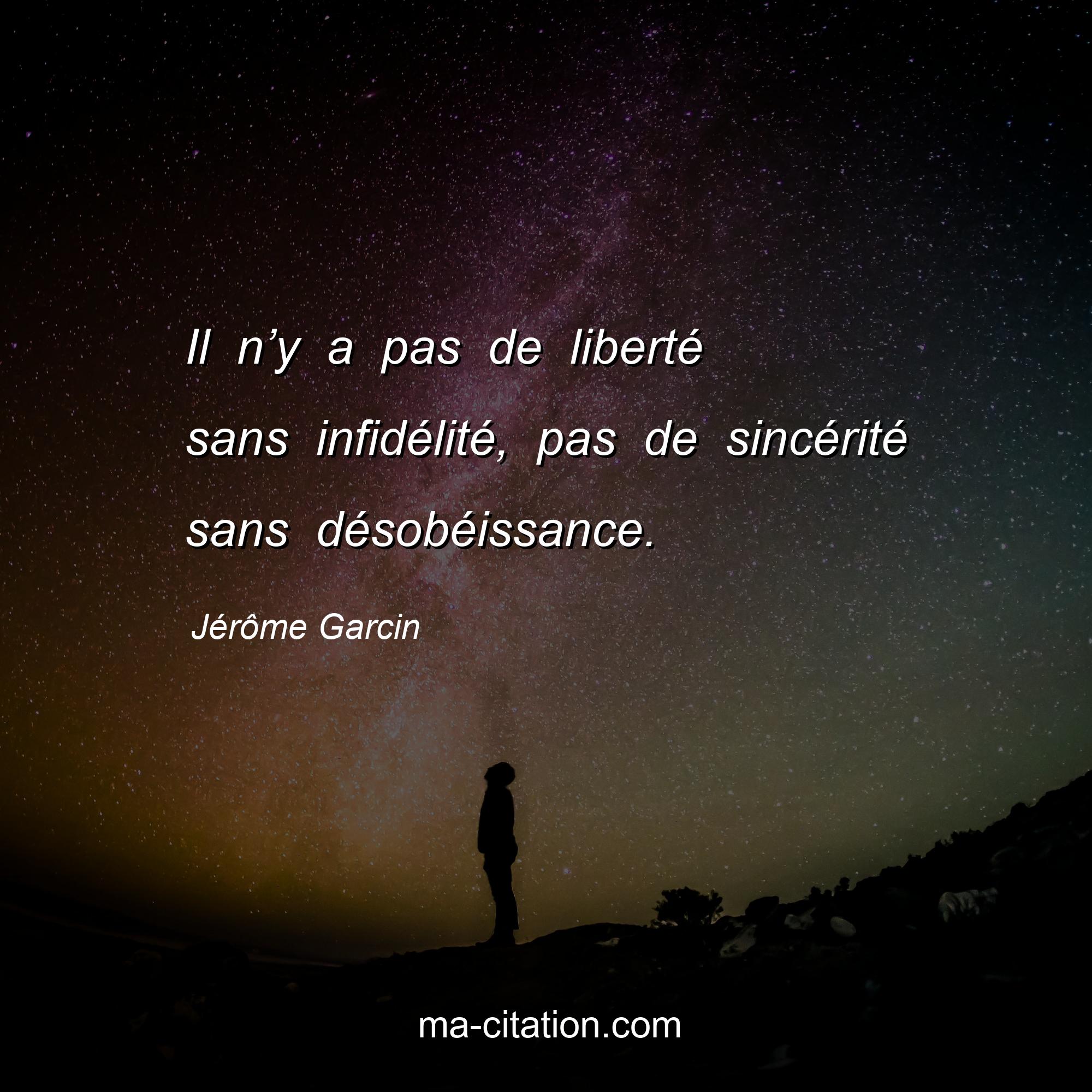 Citation sur la vie de Jérôme Garcin :Il n’y a pas de liberté sans infidélité, pas de sincérité sans désobéissance.