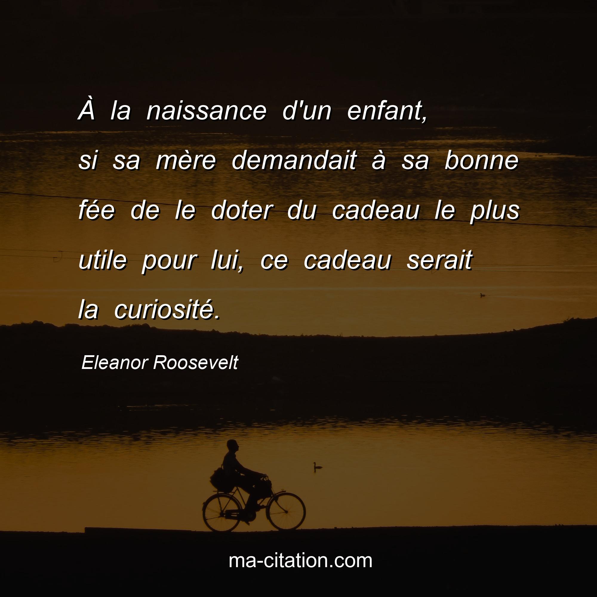 Citation sur la vie d'Eleanor Roosevelt :À la naissance d'un enfant, si sa mère demandait à sa bonne fée de le doter du cadeau le plus utile pour lui, ce cadeau serait la curiosité.