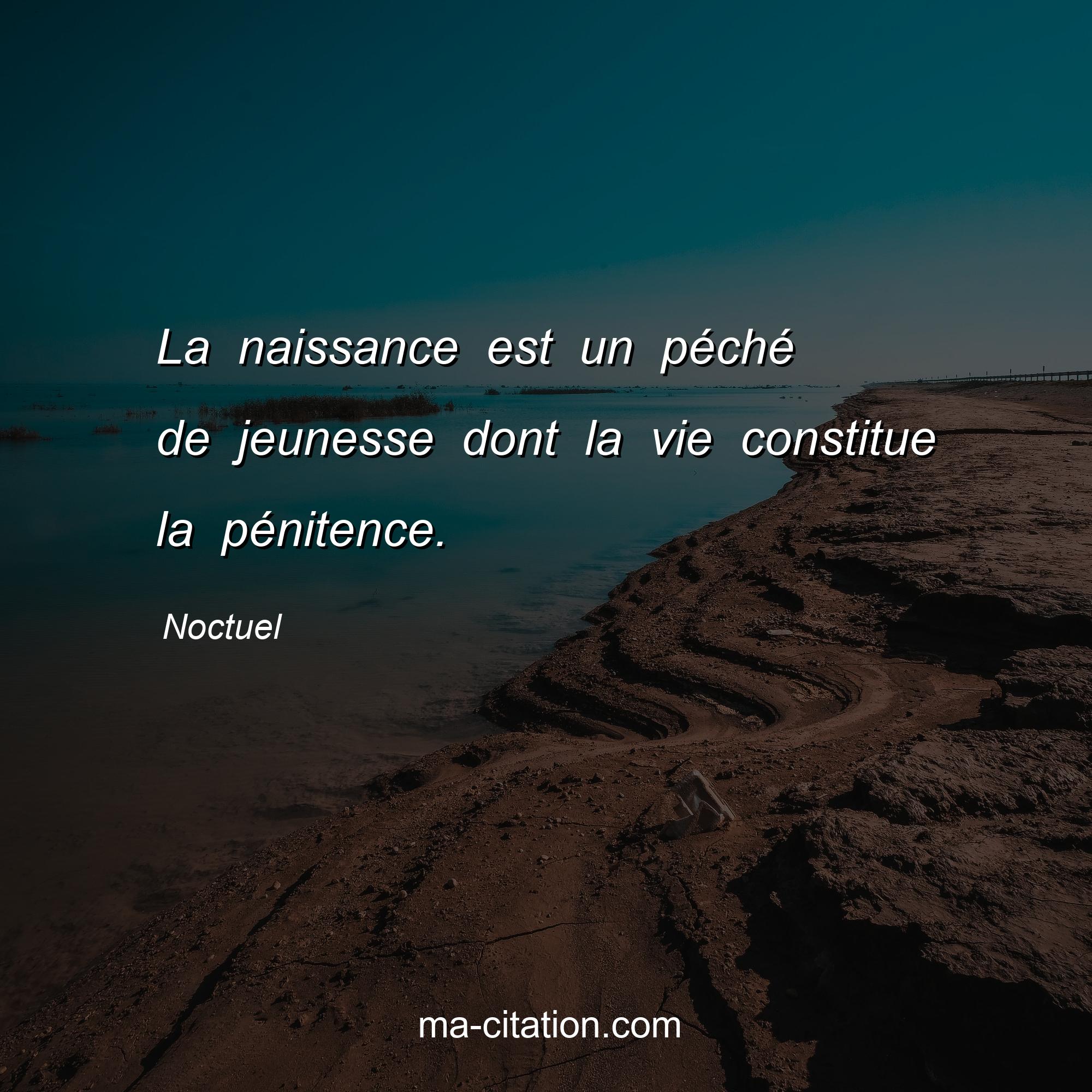Citation sur la vie de Noctuel :La naissance est un péché de jeunesse dont la vie constitue la pénitence.