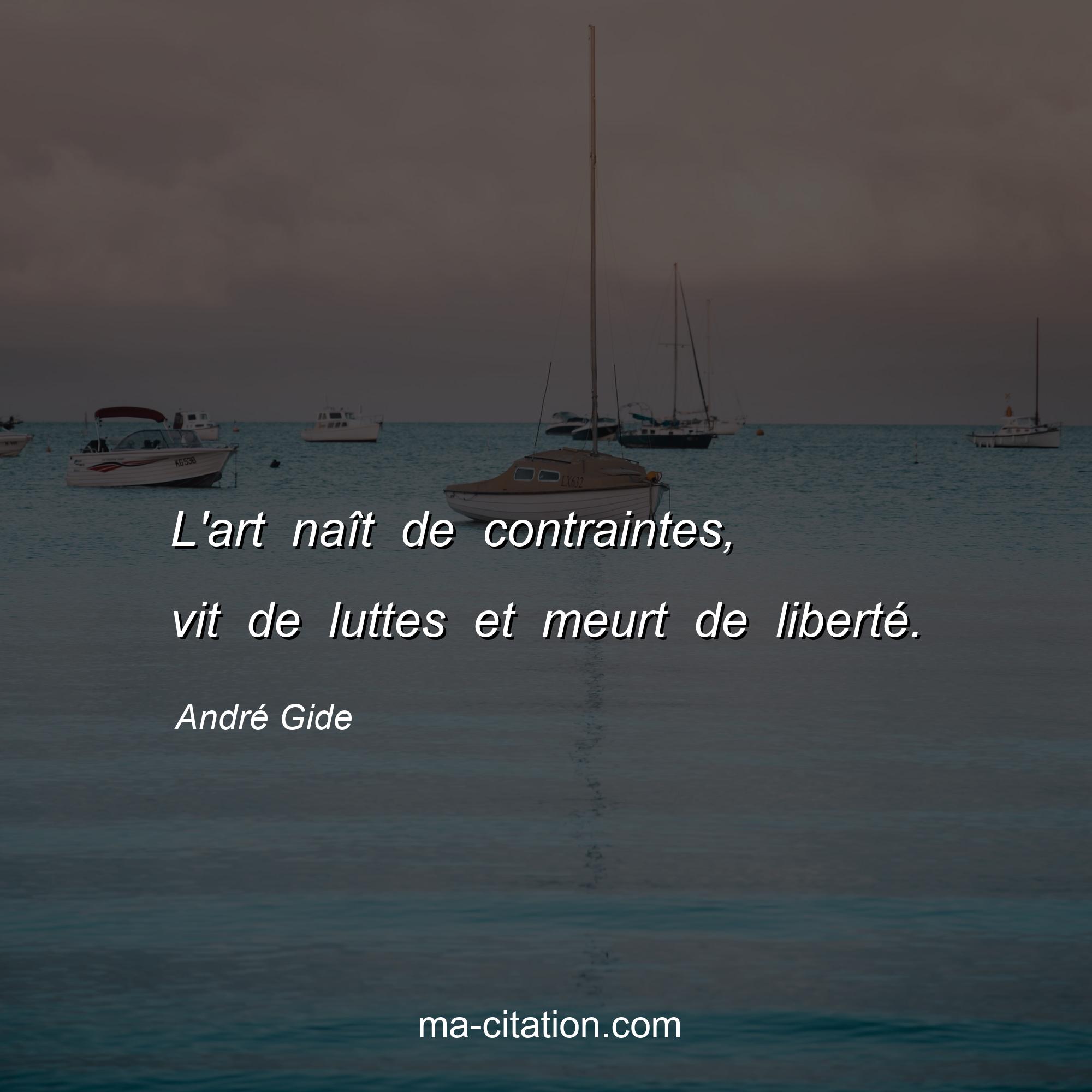 Citation sur la vie d'André Gide :L'art naît de contraintes, vit de luttes et meurt de liberté.