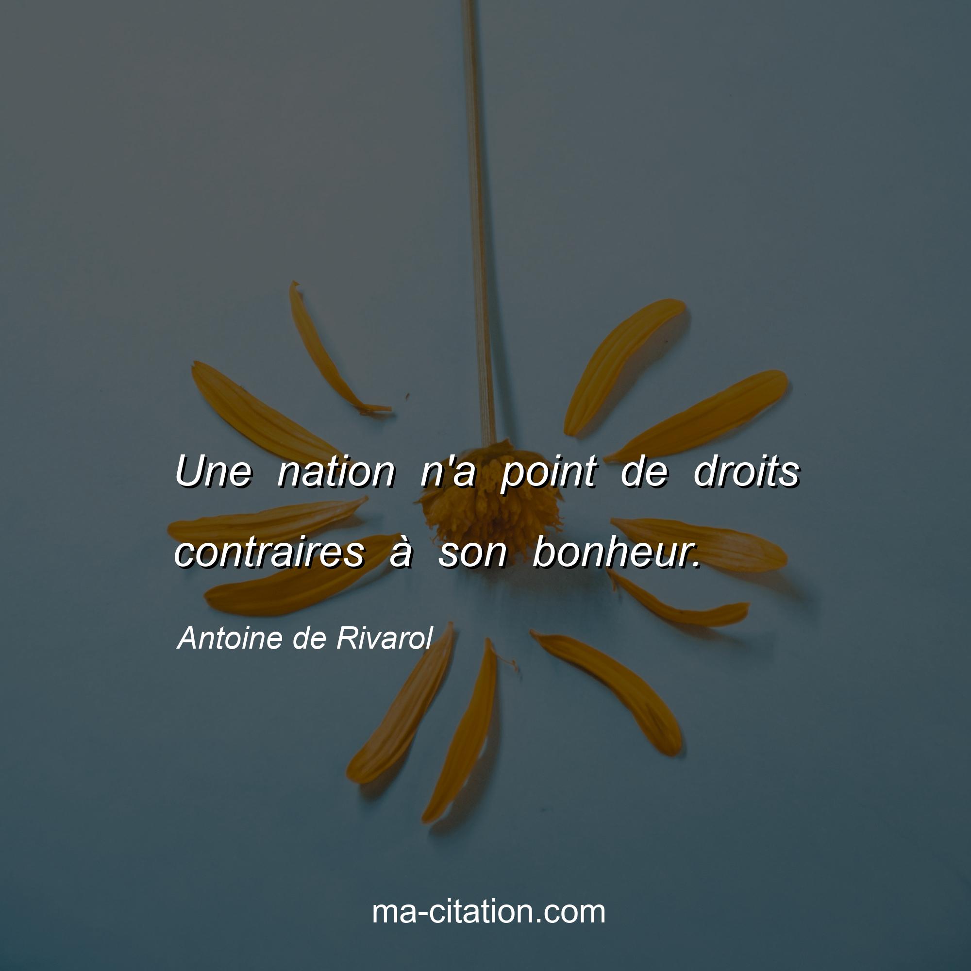 Antoine de Rivarol est l'auteur de la citation sur la vie "Une nation n'a point de droits contraires à son bonheur.".