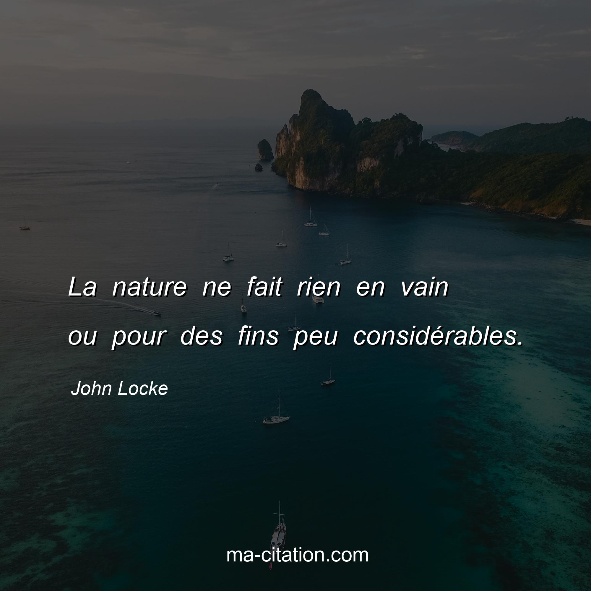 Citation sur la vie de John Locke :La nature ne fait rien en vain ou pour des fins peu considérables.