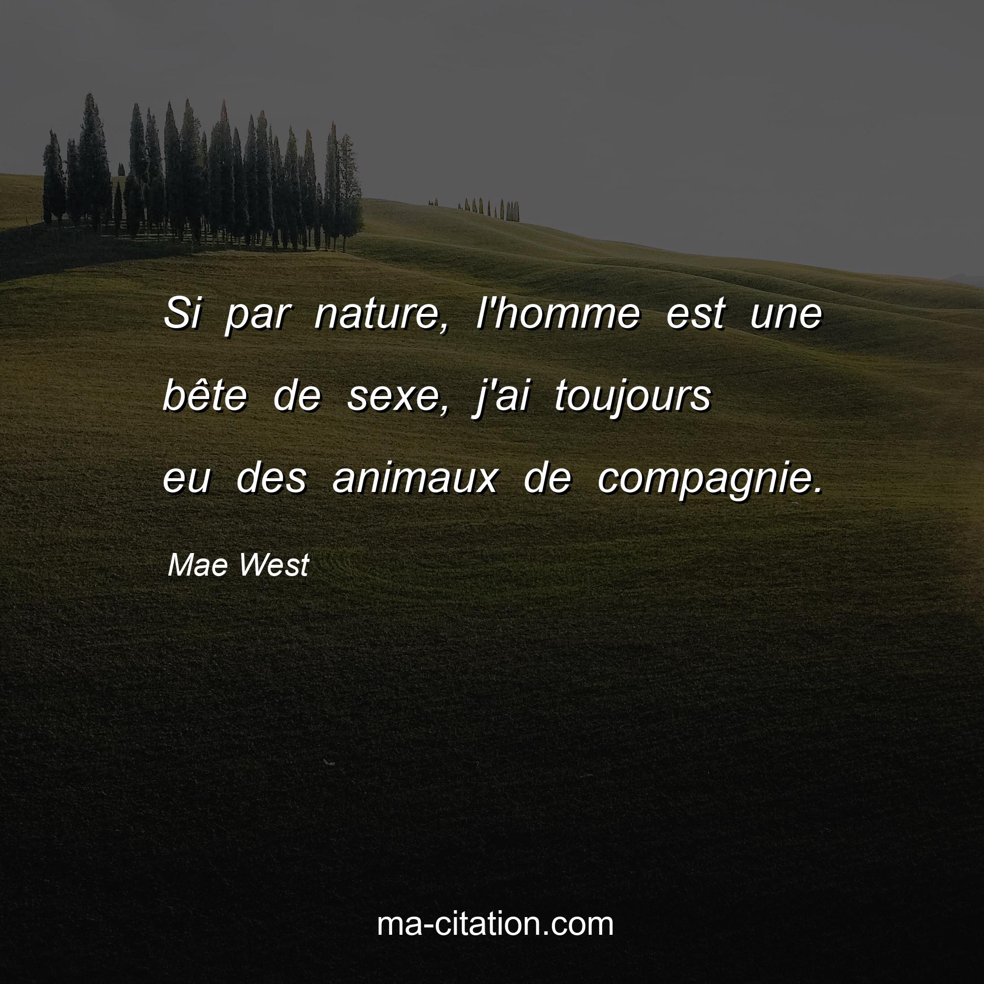 Citation sur la vie de Mae West :Si par nature, l'homme est une bête de sexe, j'ai toujours eu des animaux de compagnie.