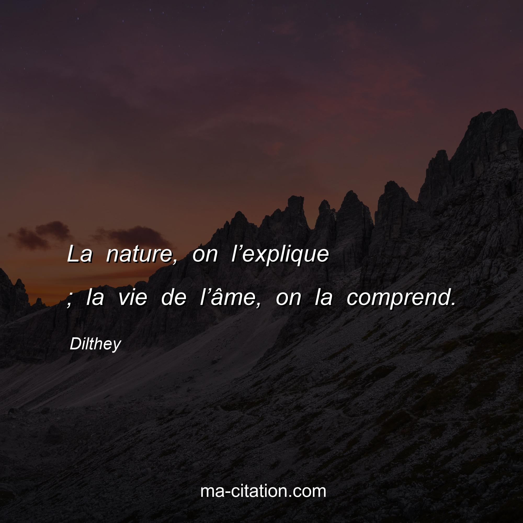 Citation sur la vie de Dilthey :La nature, on l’explique ; la vie de l’âme, on la comprend.