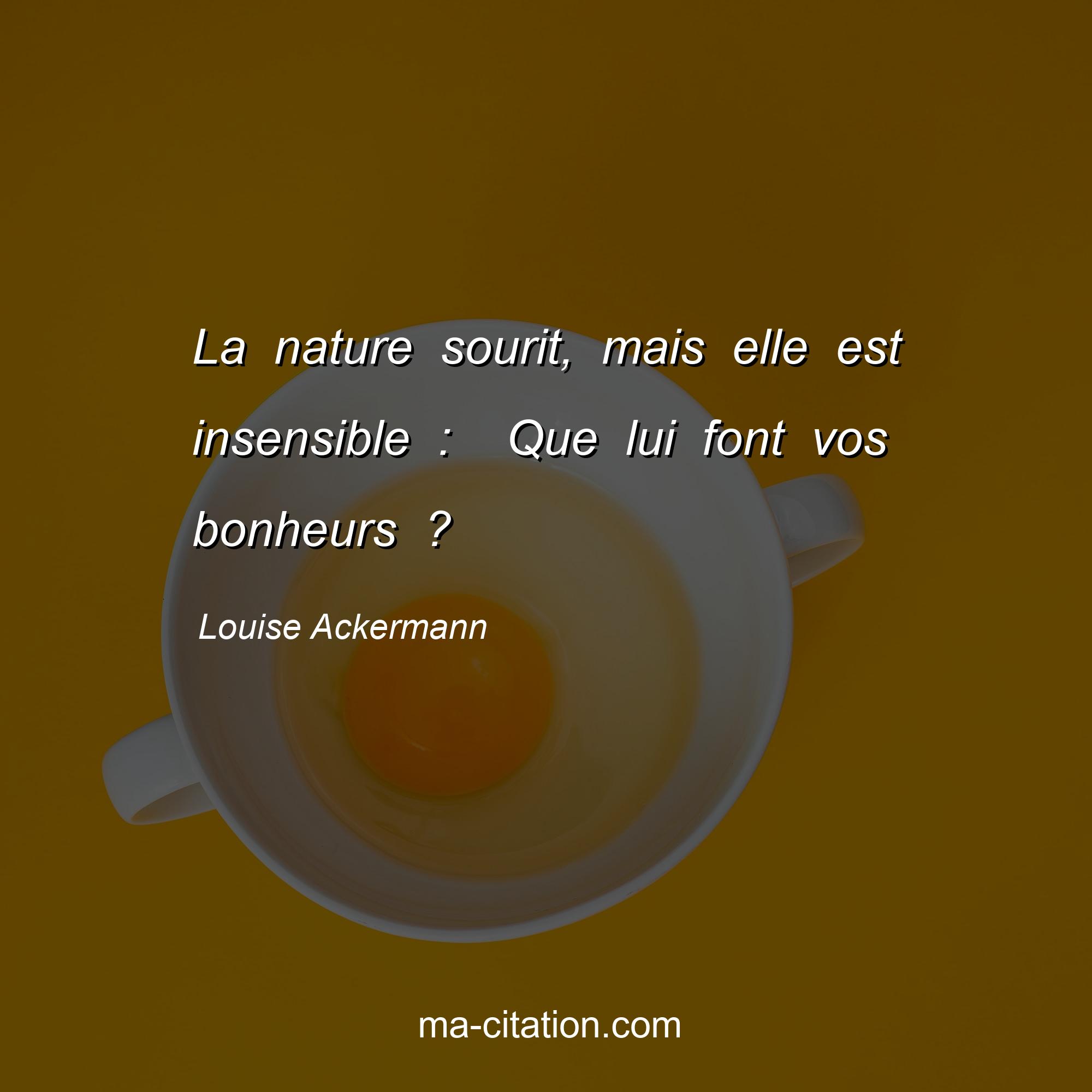Citation sur la vie de Louise Ackermann :La nature sourit, mais elle est insensible : Que lui font vos bonheurs ?