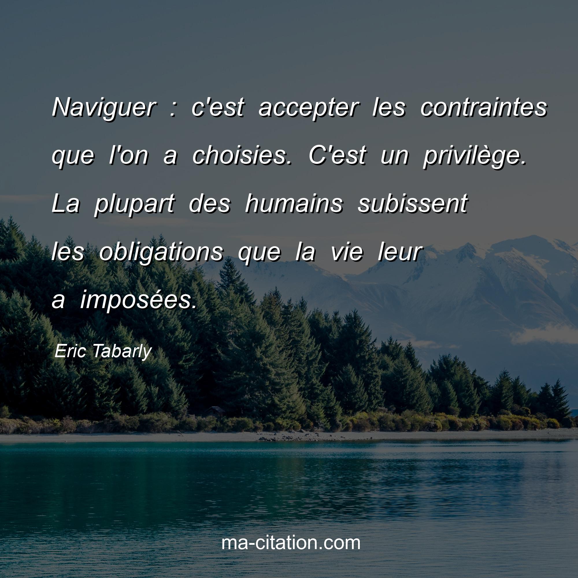 Citation sur la vie d'Eric Tabarly :Naviguer : c'est accepter les contraintes que l'on a choisies. C'est un privilège. La plupart des humains subissent les obligations que la vie leur a imposées.