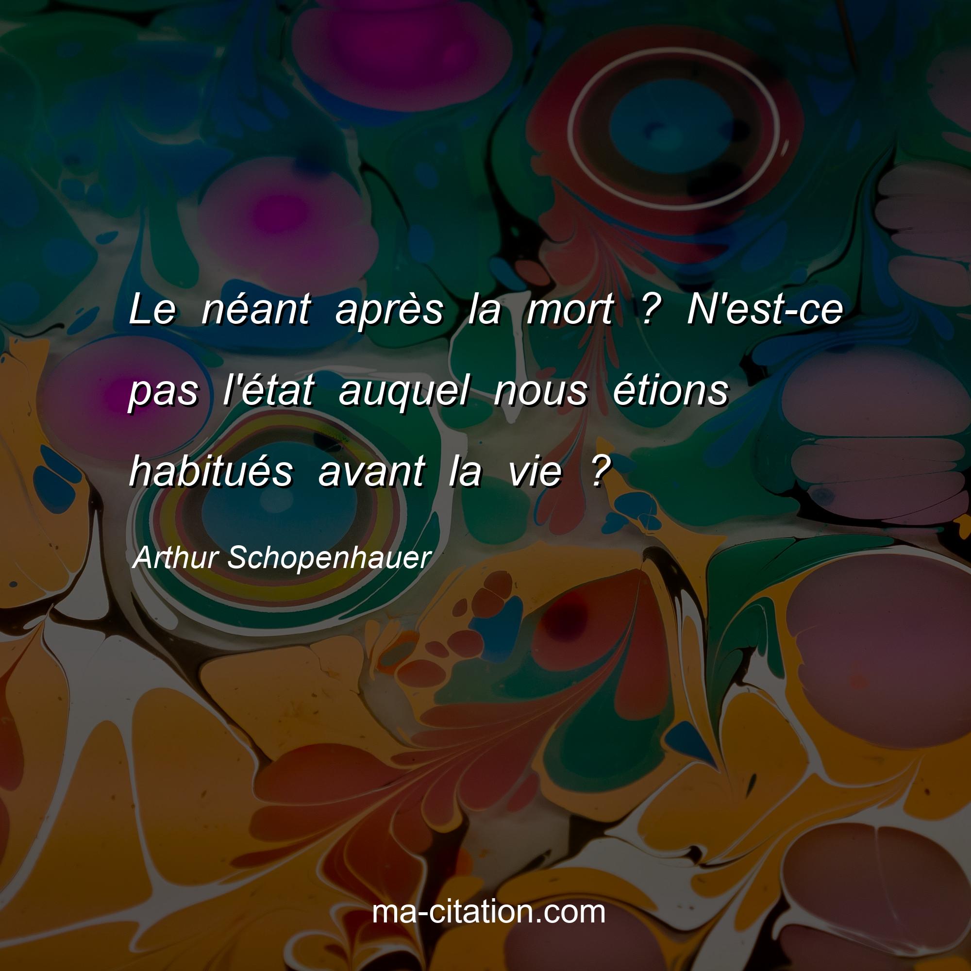 Citation sur la vie d'Arthur Schopenhauer :Le néant après la mort ? N'est-ce pas l'état auquel nous étions habitués avant la vie ?