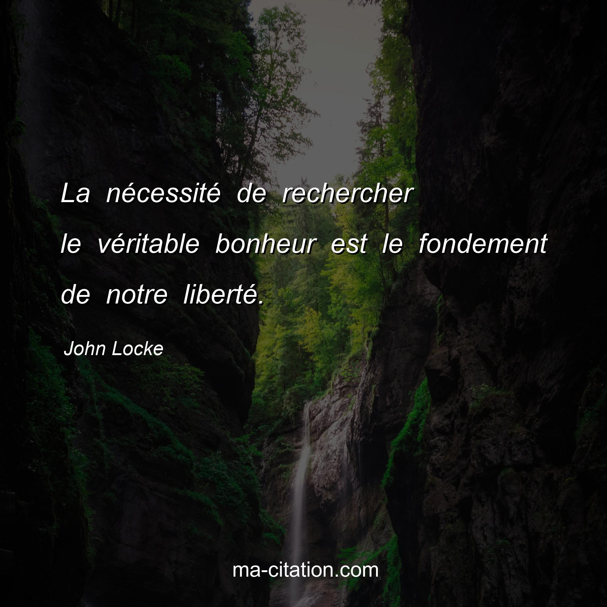 Citation sur la vie de John Locke :La nécessité de rechercher le véritable bonheur est le fondement de notre liberté.