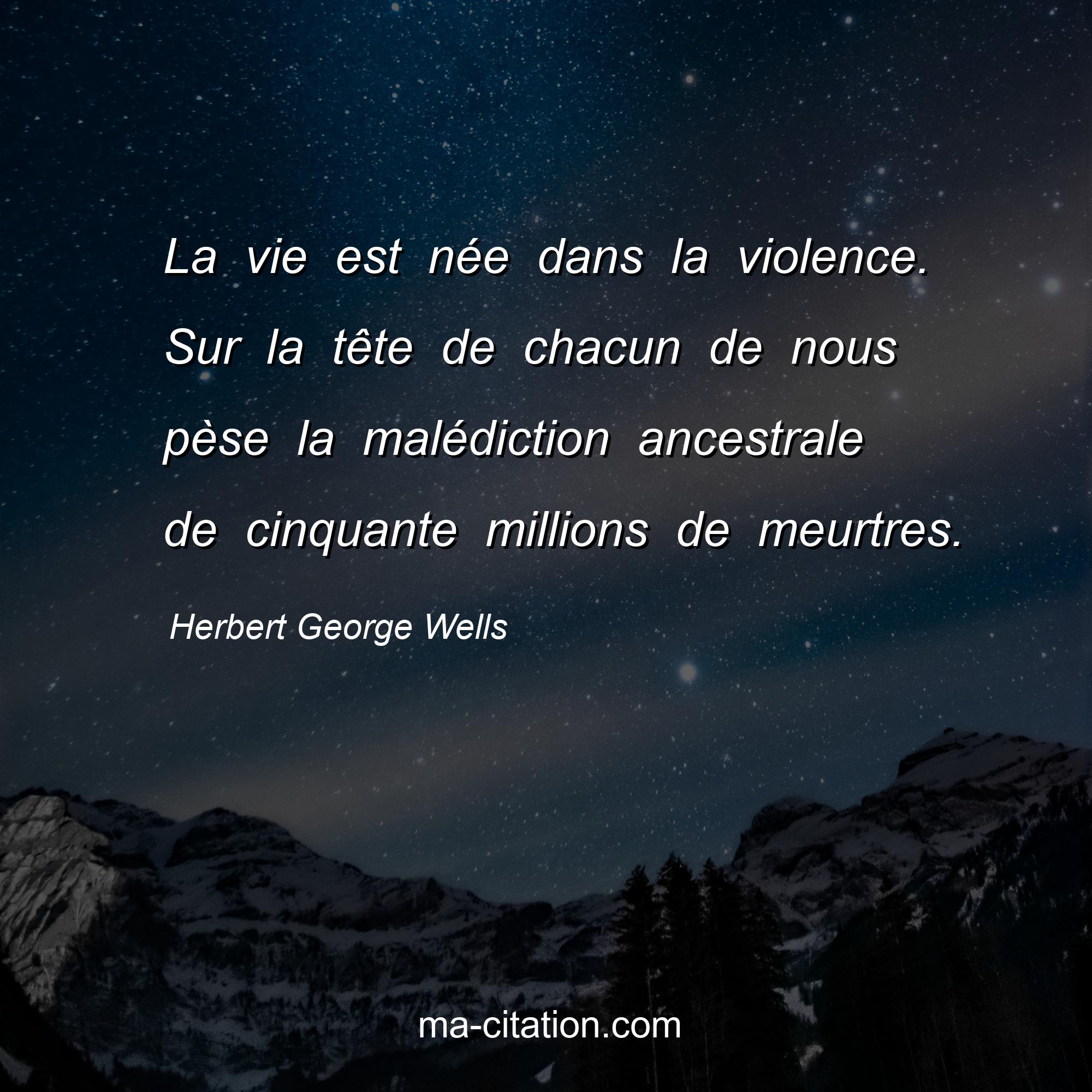 Citation sur la vie de Herbert George Wells :La vie est née dans la violence. Sur la tête de chacun de nous pèse la malédiction ancestrale de cinquante millions de meurtres.