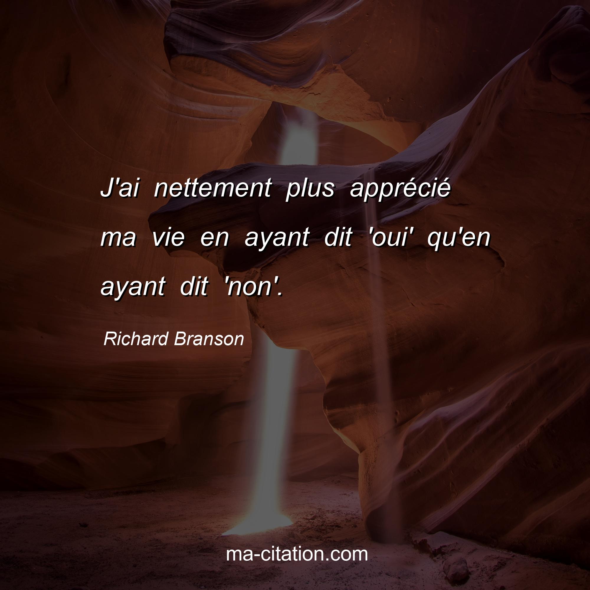 Citation sur la vie de Richard Branson :J'ai nettement plus apprécié ma vie en ayant dit 'oui' qu'en ayant dit 'non'.
