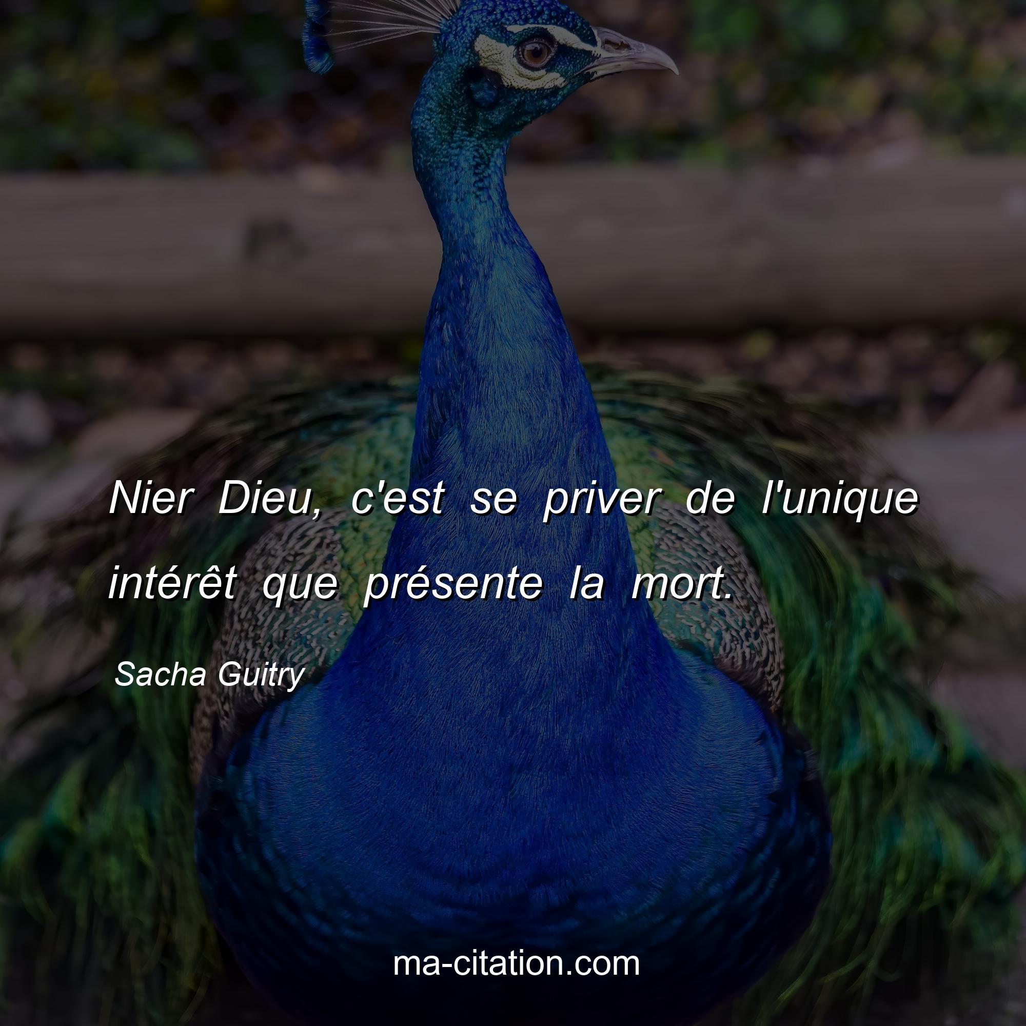 Sacha Guitry est l'auteur de la citation sur la vie "Nier Dieu, c'est se priver de l'unique intérêt que présente la mort.".