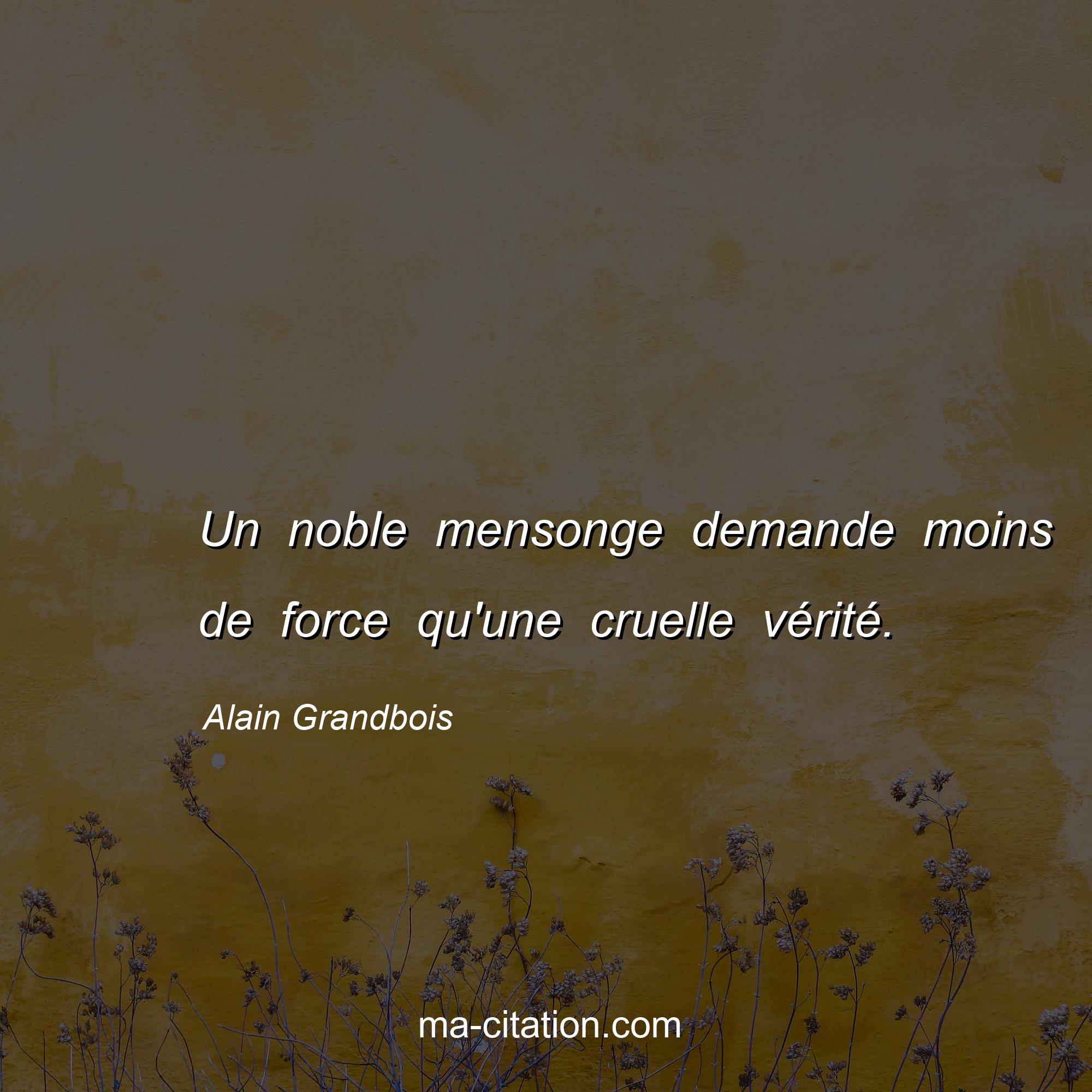 Alain Grandbois est l'auteur de la citation sur la vie "Un noble mensonge demande moins de force qu'une cruelle vérité.".