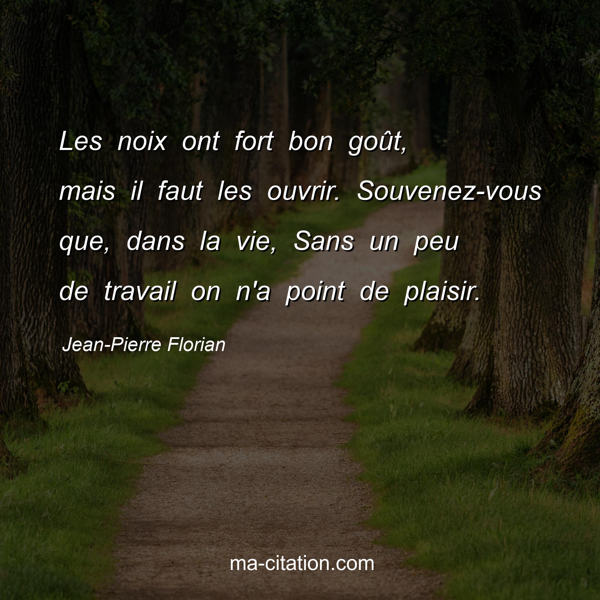 Citation sur la vie de Jean-Pierre Florian :Les noix ont fort bon goût, mais il faut les ouvrir. Souvenez-vous que, dans la vie, Sans un peu de travail on n'a point de plaisir.