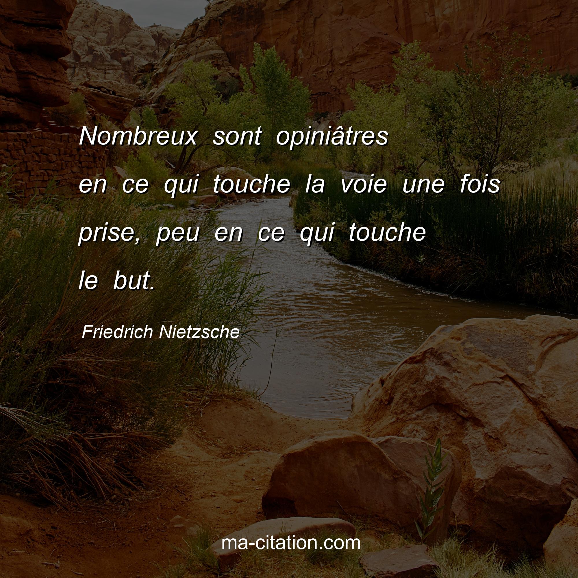 Citation sur la vie de Friedrich Nietzsche :Nombreux sont opiniâtres en ce qui touche la voie une fois prise, peu en ce qui touche le but.
