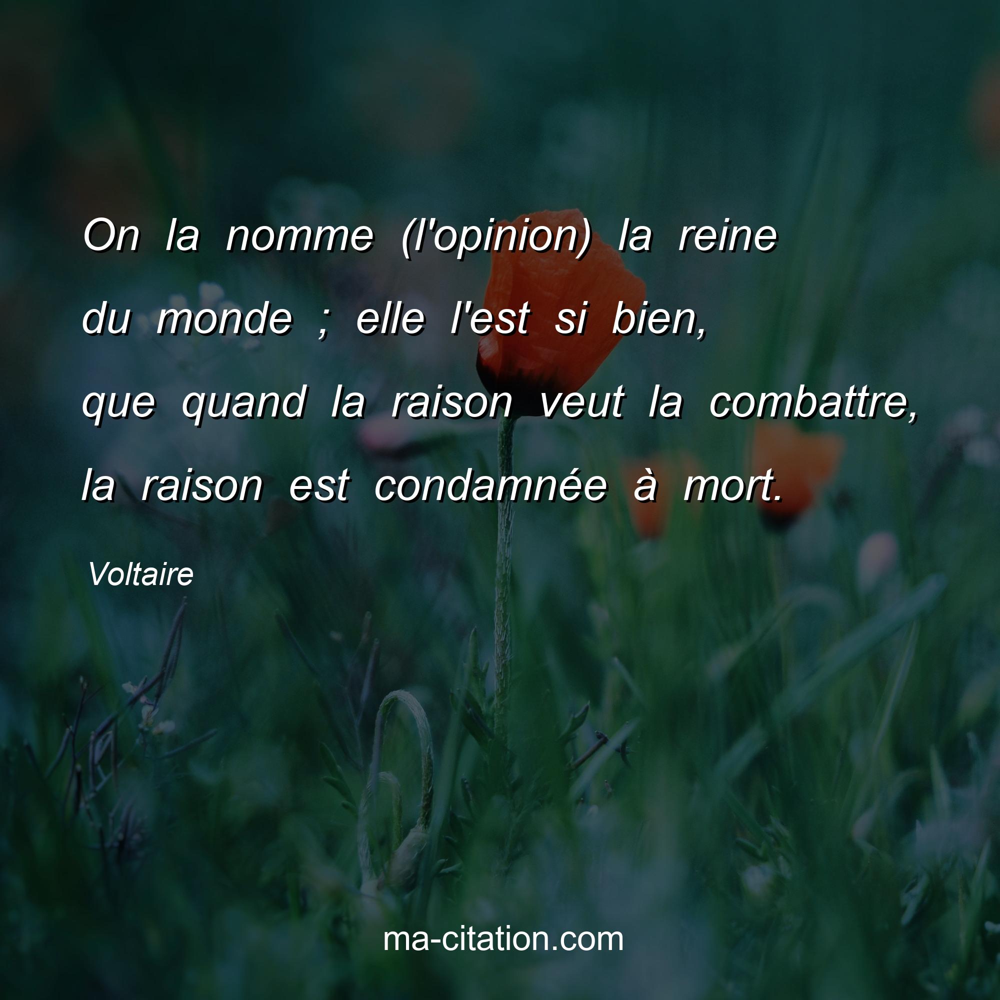 Citation sur la vie de Voltaire :On la nomme (l'opinion) la reine du monde ; elle l'est si bien, que quand la raison veut la combattre, la raison est condamnée à mort.