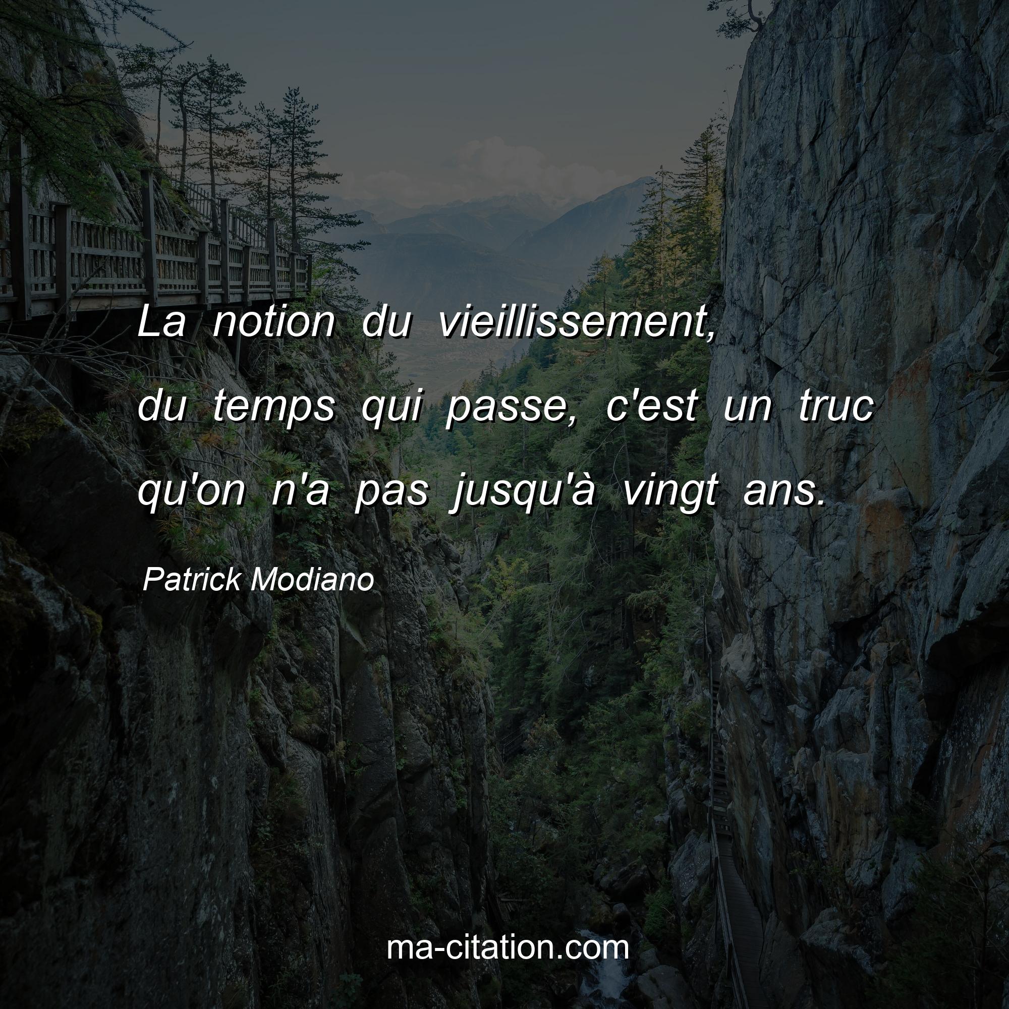 Patrick Modiano est l'auteur de la citation sur la vie "La notion du vieillissement, du temps qui passe, c'est un truc qu'on n'a pas jusqu'Ã vingt ans.".