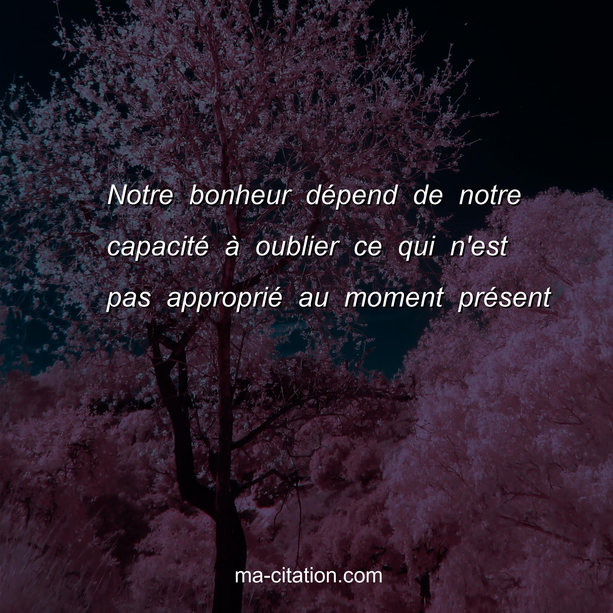 Citation sur la vie :Notre bonheur dépend de notre capacité à oublier ce qui n'est pas approprié au moment présent