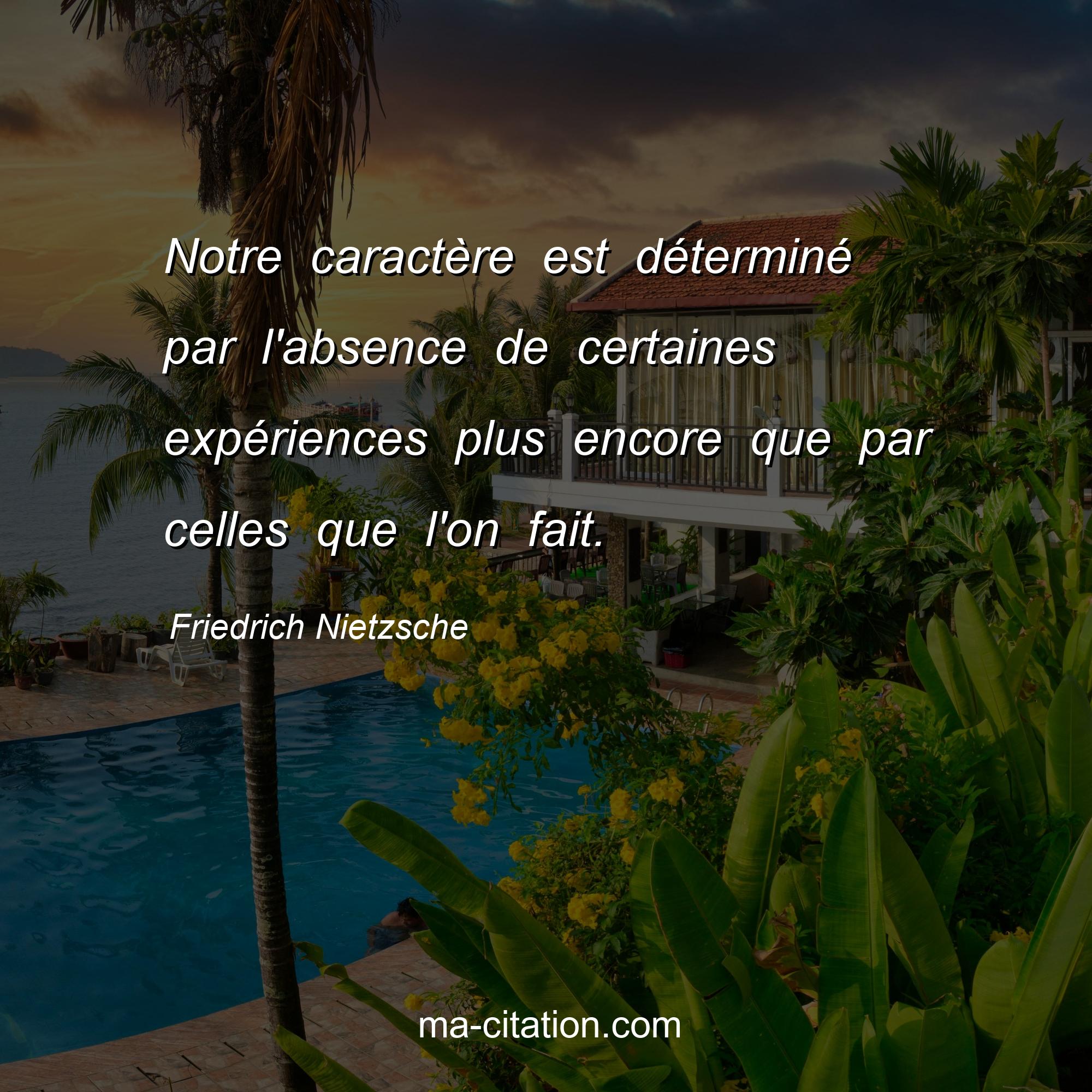 Citation sur la vie de Friedrich Nietzsche :Notre caractère est déterminé par l'absence de certaines expériences plus encore que par celles que l'on fait.
