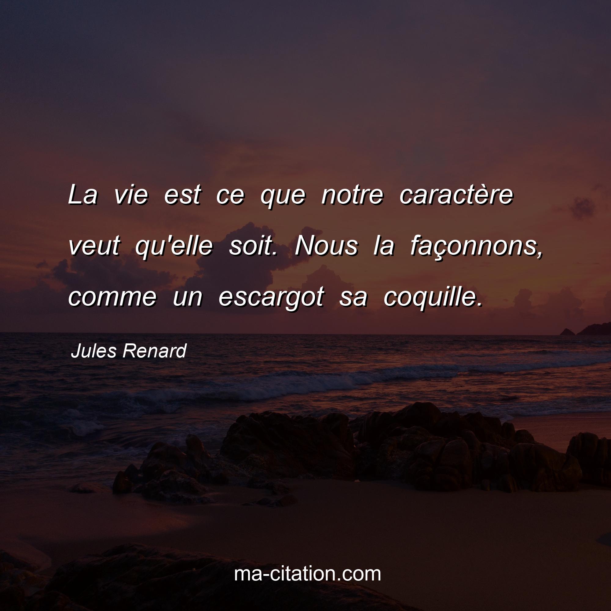 Citation sur la vie de Jules Renard :La vie est ce que notre caractère veut qu'elle soit. Nous la façonnons, comme un escargot sa coquille.