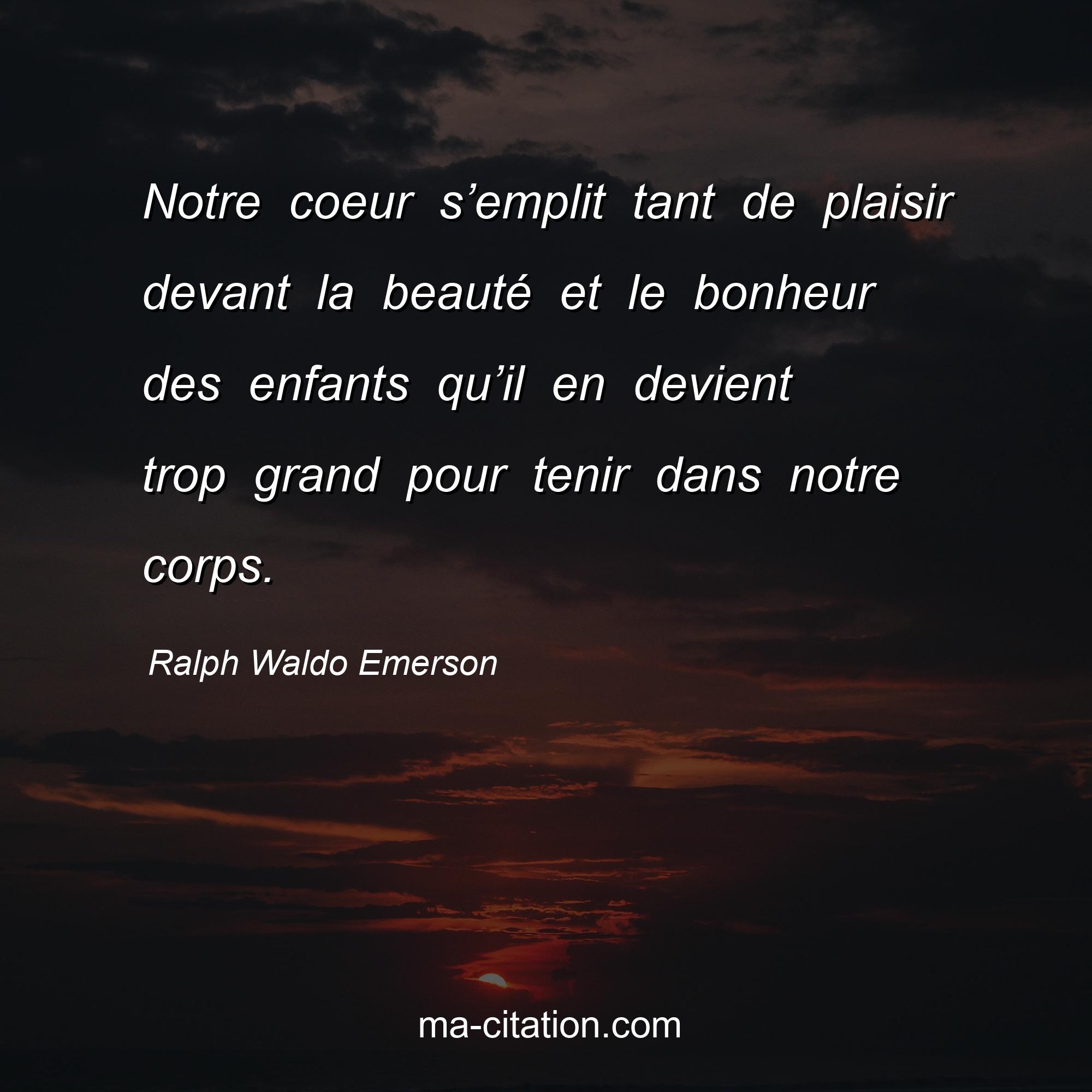 Citation sur la vie de Ralph Waldo Emerson :Notre coeur s’emplit tant de plaisir devant la beauté et le bonheur des enfants qu’il en devient trop grand pour tenir dans notre corps.