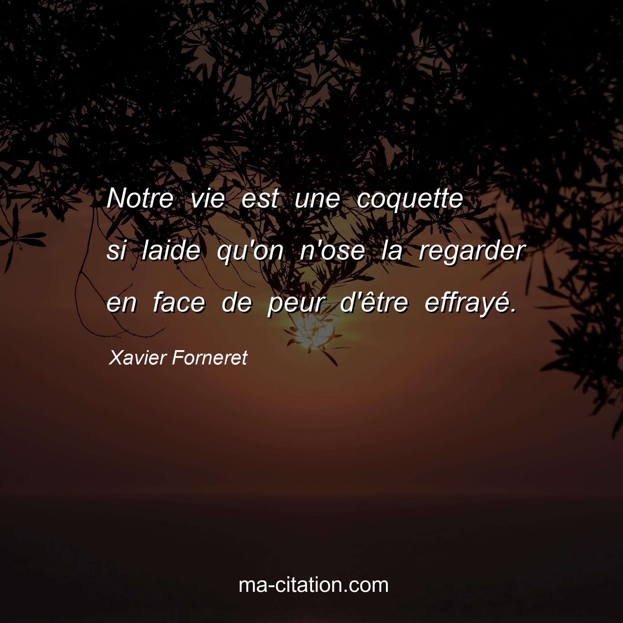 Citation sur la vie de Xavier Forneret :Notre vie est une coquette si laide qu'on n'ose la regarder en face de peur d'être effrayé.