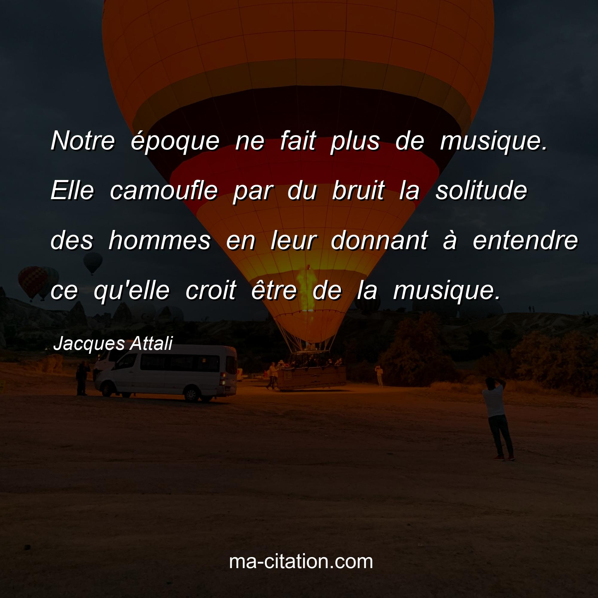 Citation sur la vie de Jacques Attali :Notre époque ne fait plus de musique. Elle camoufle par du bruit la solitude des hommes en leur donnant à entendre ce qu'elle croit être de la musique.