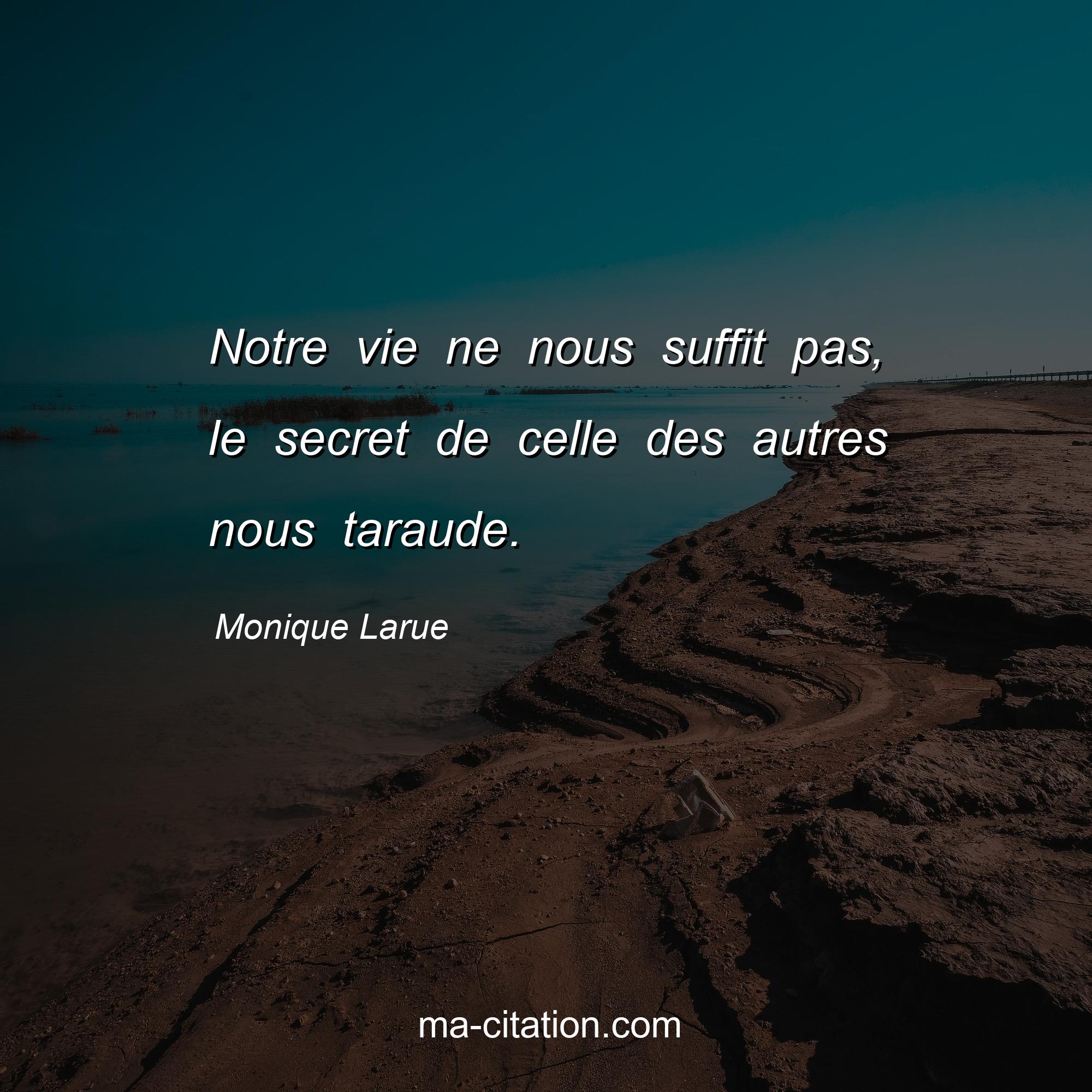 Citation sur la vie de Monique Larue :Notre vie ne nous suffit pas, le secret de celle des autres nous taraude.