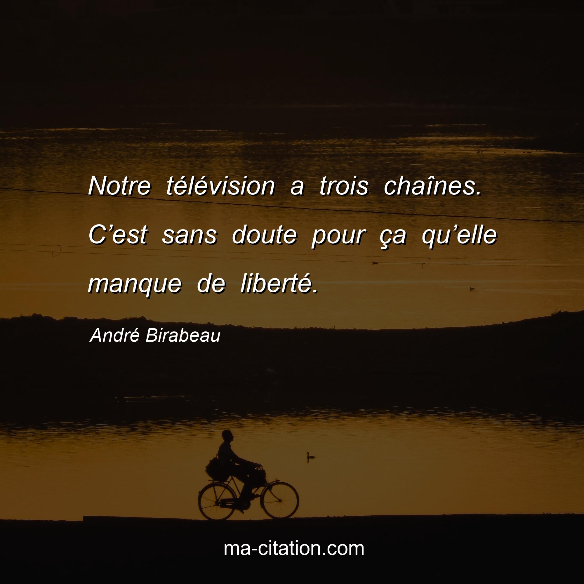 Citation sur la vie d'André Birabeau :Notre télévision a trois chaînes. C’est sans doute pour ça qu’elle manque de liberté.