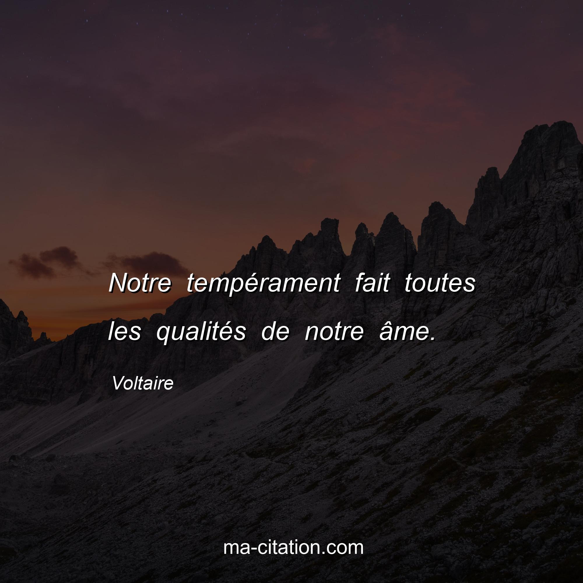Citation sur la vie de Voltaire :Notre tempérament fait toutes les qualités de notre âme.