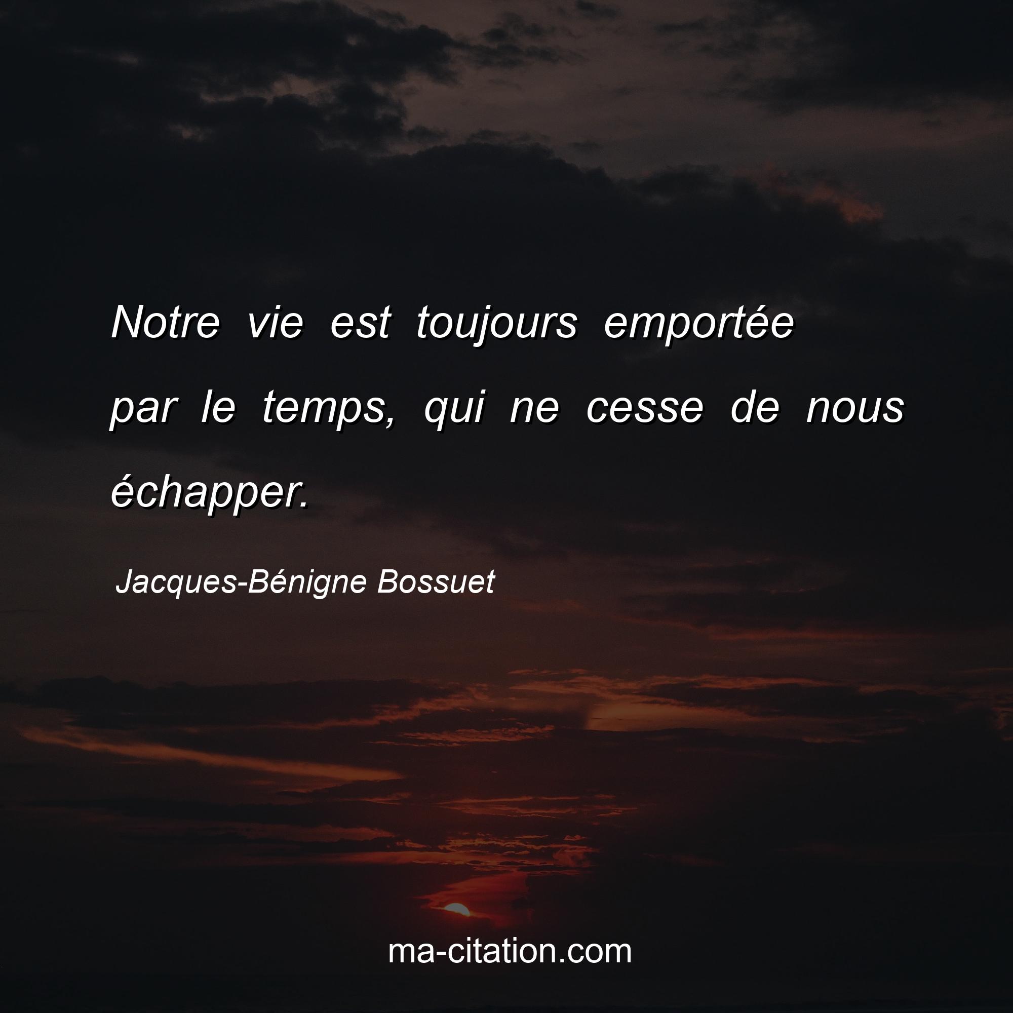 Citation sur la vie de Jacques-Bénigne Bossuet :Notre vie est toujours emportée par le temps, qui ne cesse de nous échapper.