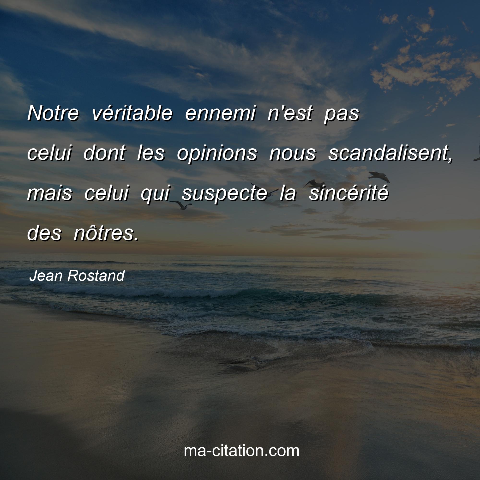 Jean Rostand est l'auteur de la citation sur la vie "Notre véritable ennemi n'est pas celui dont les opinions nous scandalisent, mais celui qui suspecte la sincérité des nôtres.".