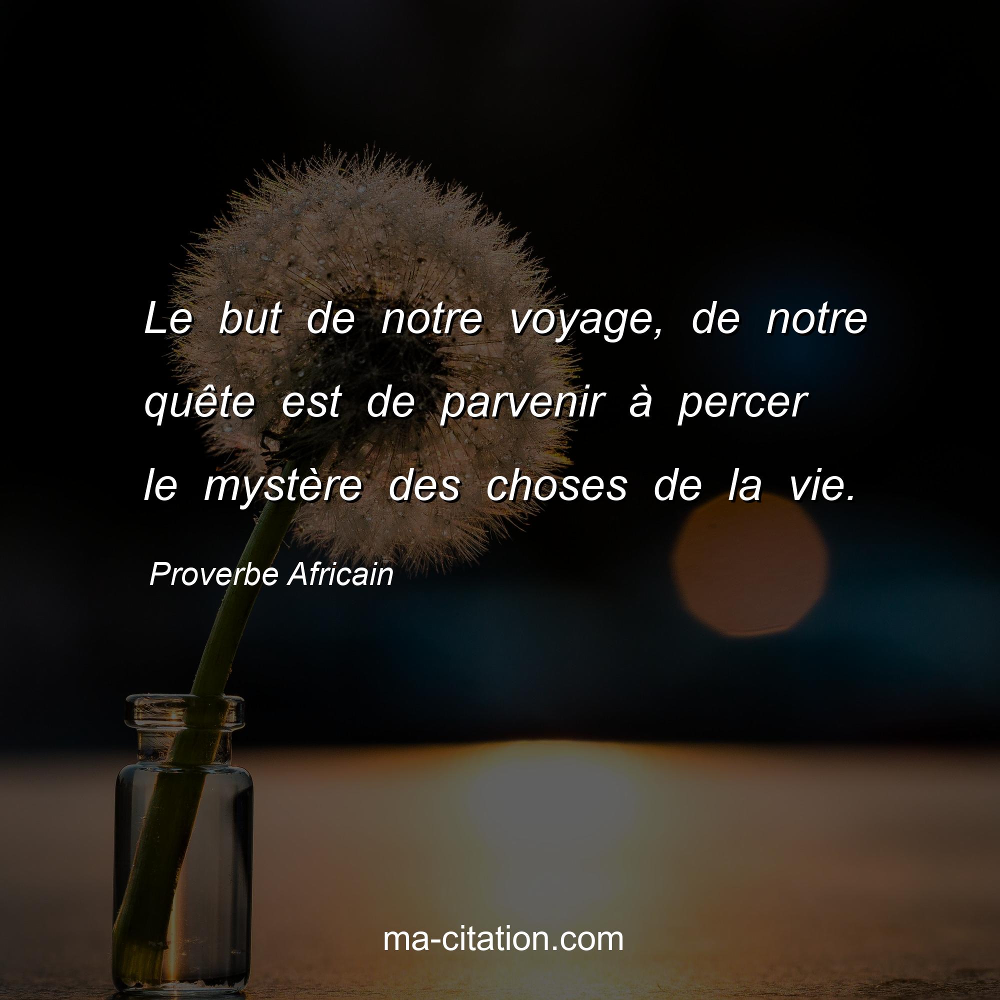 Le but de notre voyage, de notre quête est de parvenir à percer le mystère des choses de la vie.