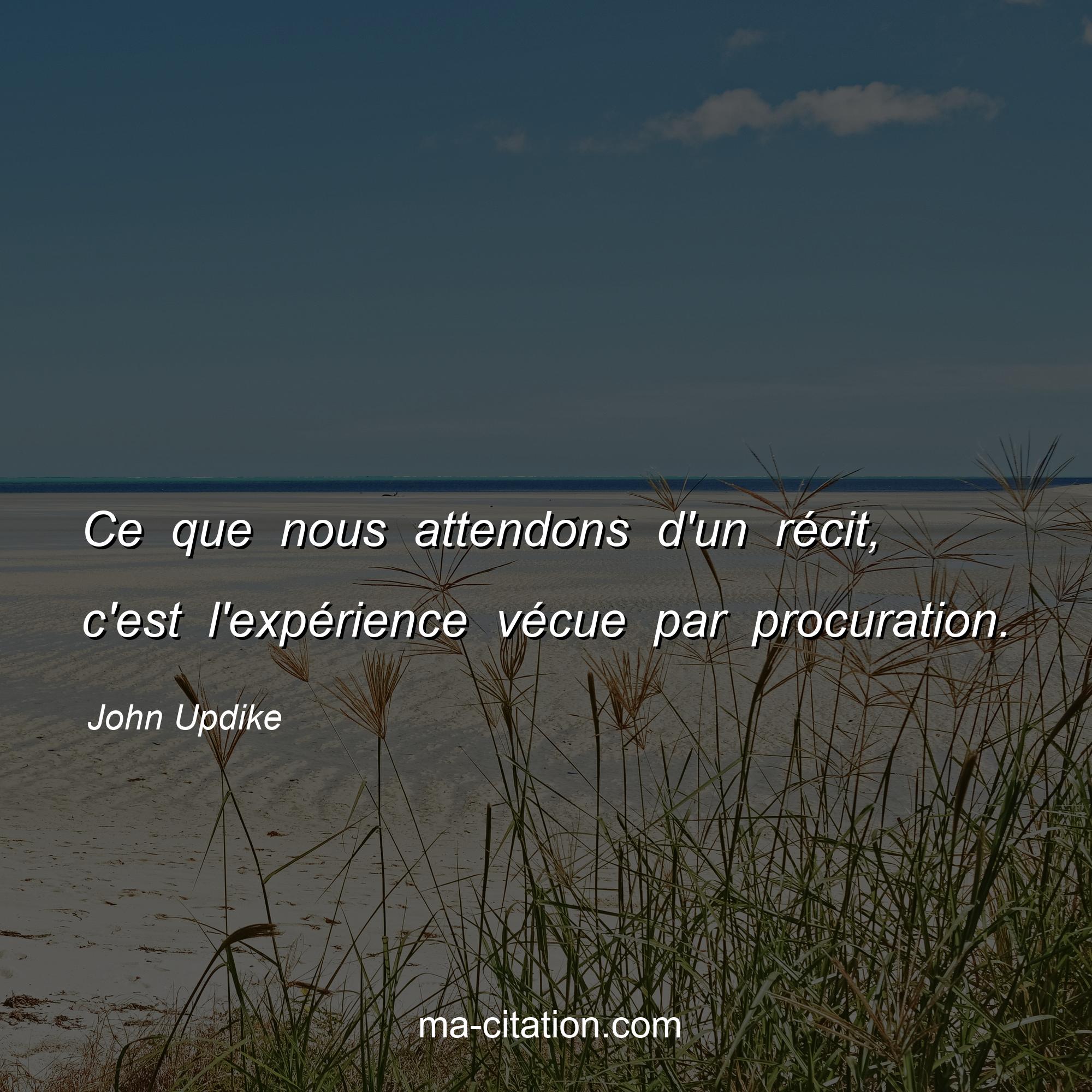 Citation sur la vie de John Updike :Ce que nous attendons d'un récit, c'est l'expérience vécue par procuration.