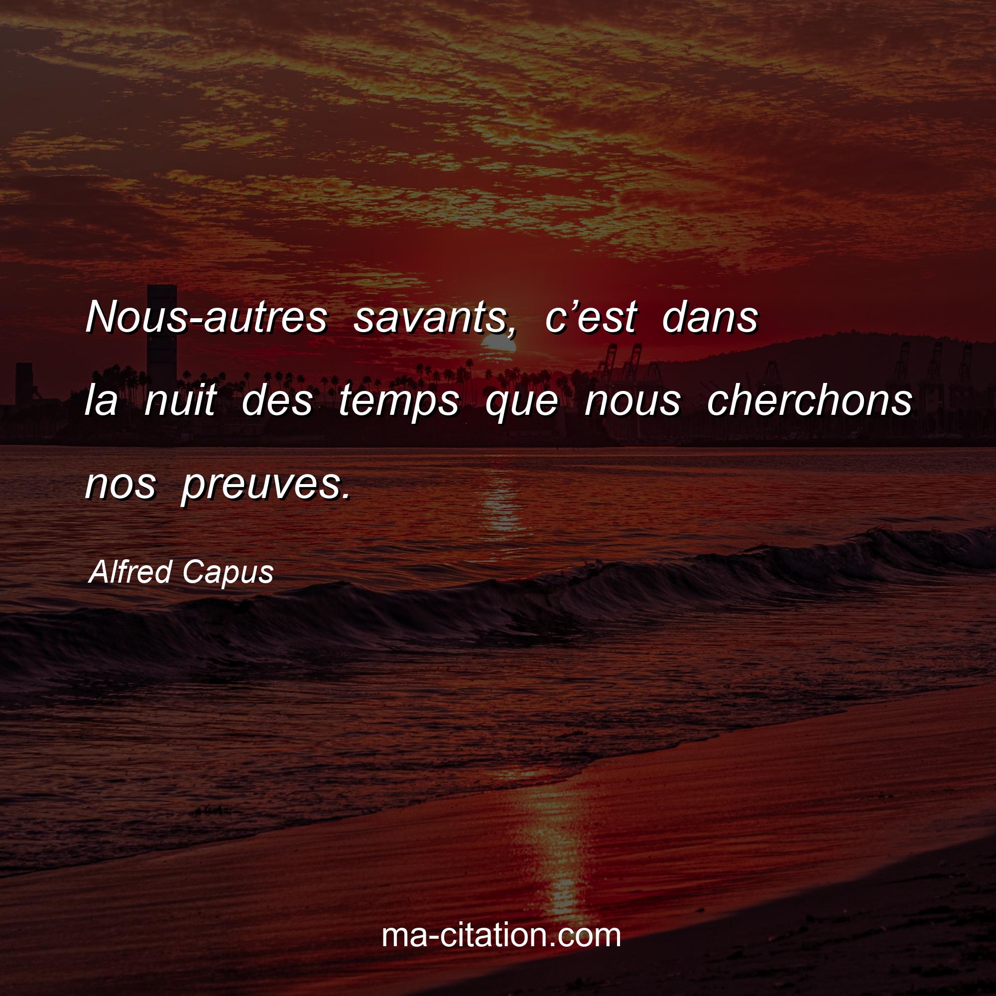 Citation sur la vie d'Alfred Capus :Nous-autres savants, c’est dans la nuit des temps que nous cherchons nos preuves.