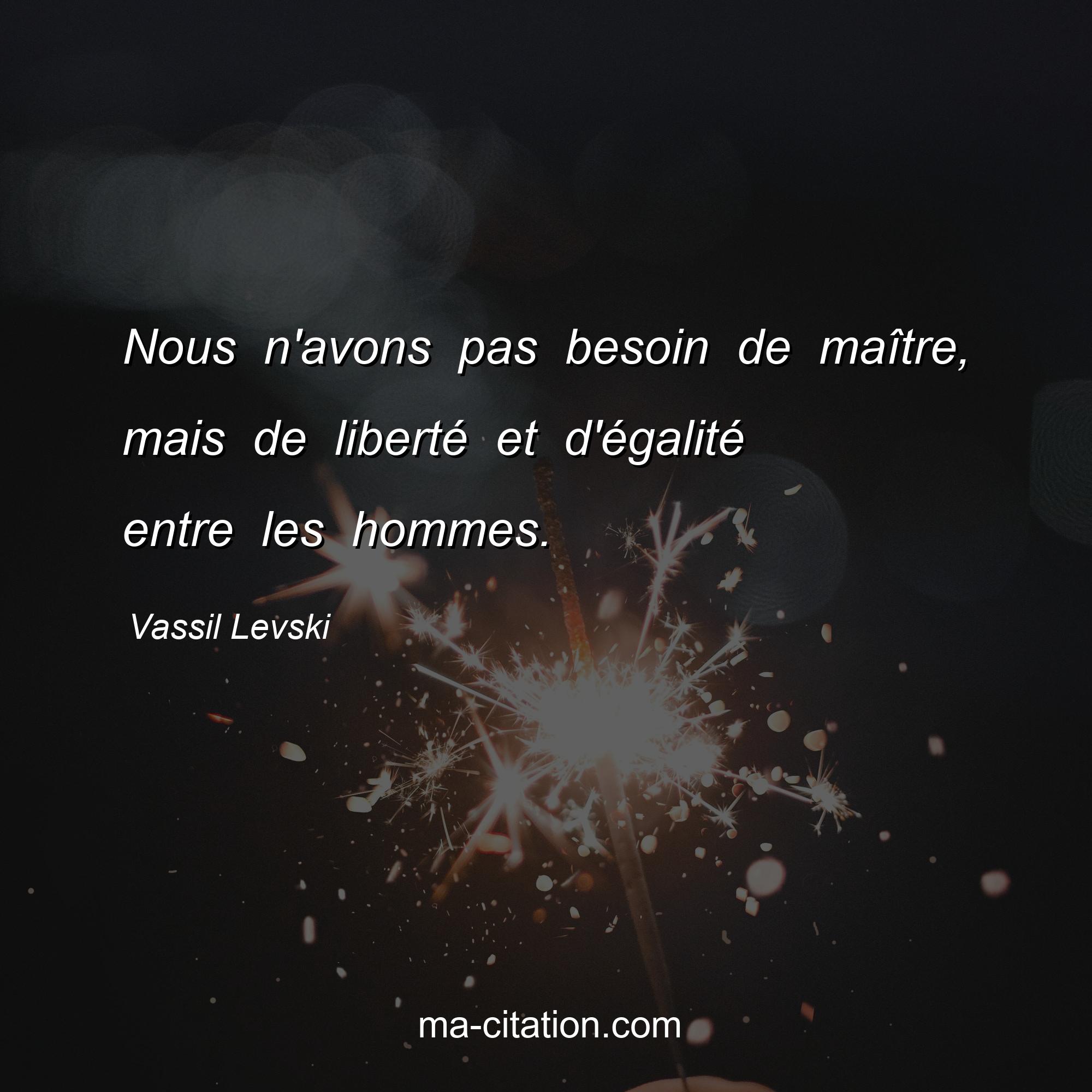 Citation sur la vie de Vassil Levski :Nous n'avons pas besoin de maître, mais de liberté et d'égalité entre les hommes.