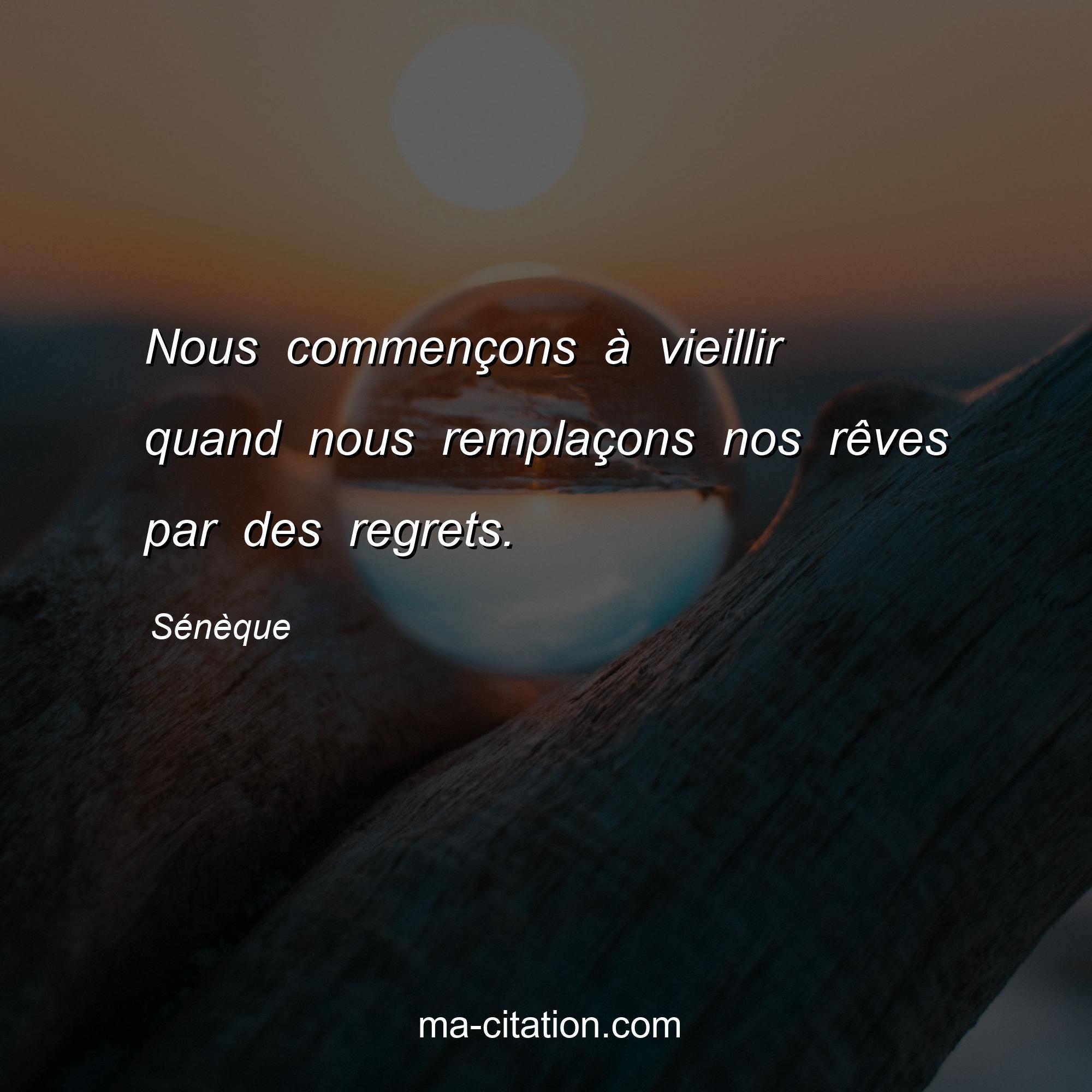Citation sur la vie de Sénèque :Nous commençons à vieillir quand nous remplaçons nos rêves par des regrets.